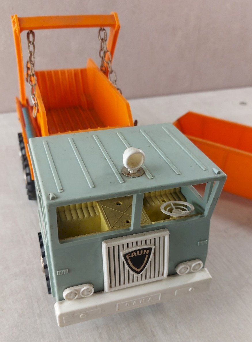 Ancien camion multi bennes basculantes / Bernard, Faun, Gama, en plastique en bon état, mécanisme fonctionne marqué Gama Faun longueur totale 32 cm v oir photos Consultez mes autres objets ! réduction des frais de port en cas d'achat groupé État:OccasionObjet ayant été utilisé. les éventuelles imperfections. Type du véhicule:Camion Marque:Gama Matériau:Plastique