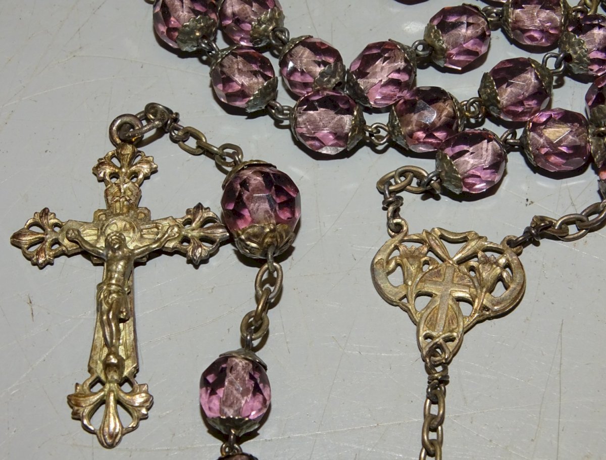 Ancien chapelet avec croix en Argent poinçon tête de sanglier et orfèvre à définir - perles de verre taillé de couleur mauve  (photos) - pur jus de trouvailles, sorti de grenier, en bon état -  Réf. 1V240718/327 Longueur 51,8 cm - Croix 2,1 x 3,7 cm -  Poids 30 g     Pour me contacter mon adresse mail : EXPEDITION POSSIBLE EN MONDIAL RELAY ou COLISSIMO sur demande TRES BON EMBALLAGE GARANTI     MERCI de BIEN REGARDER TOUTES les PHOTOS car ELLES FONT PARTIE INTEGRANTE de la DESCRIPTION et PERMETTENT de VOIR l'OBJET AU MIEUX  avec SES PETITS DEFAUTS EVENTUELS - État:Occasion: Objet ayant été utilisé. Consulter la description du vendeur pour avoir plus de détails ...Occasion: Objet ayant été utilisé. les éventuelles imperfections. Type:Christianisme Sous-type:Chapelet Pays de fabrication:France Matière:Argent