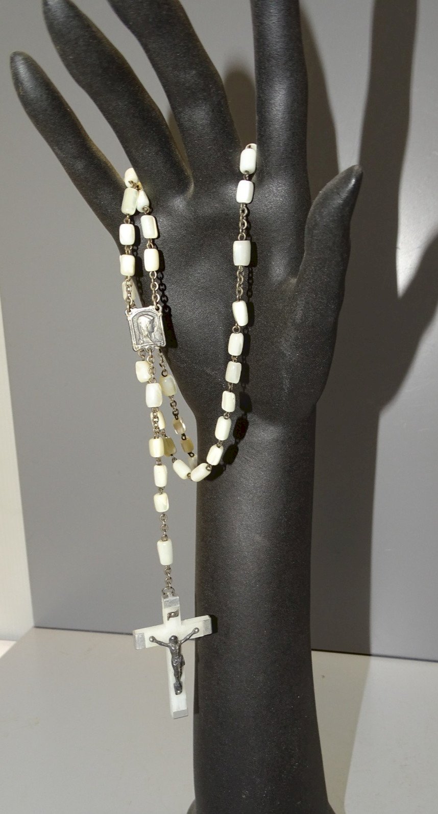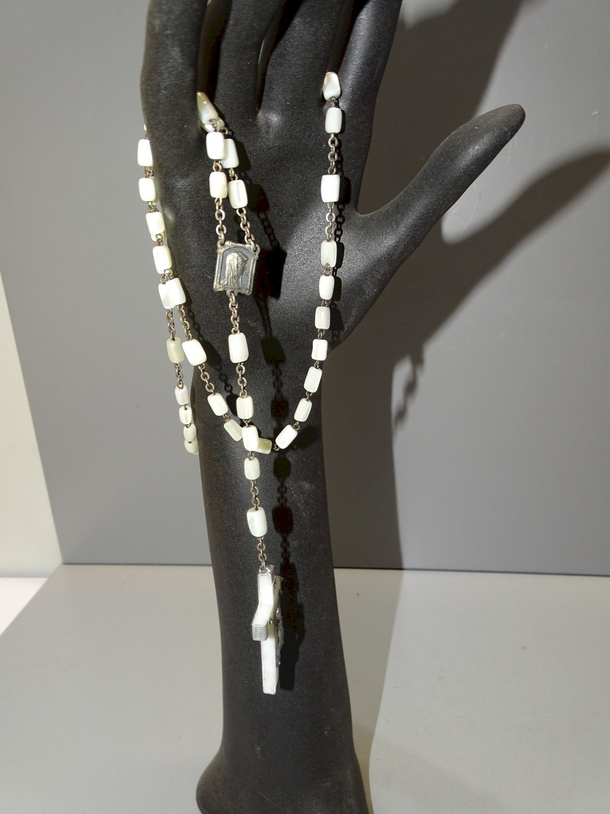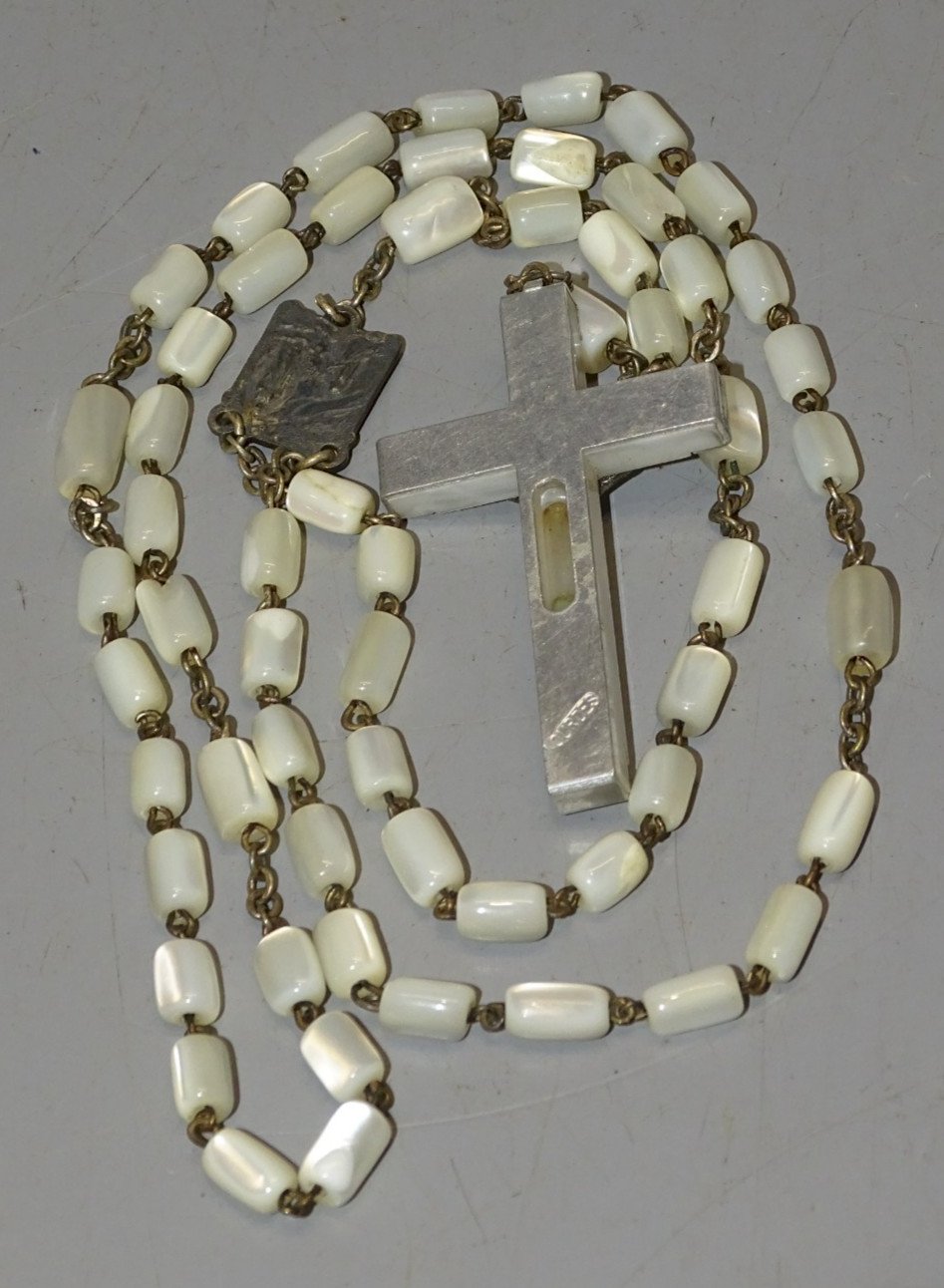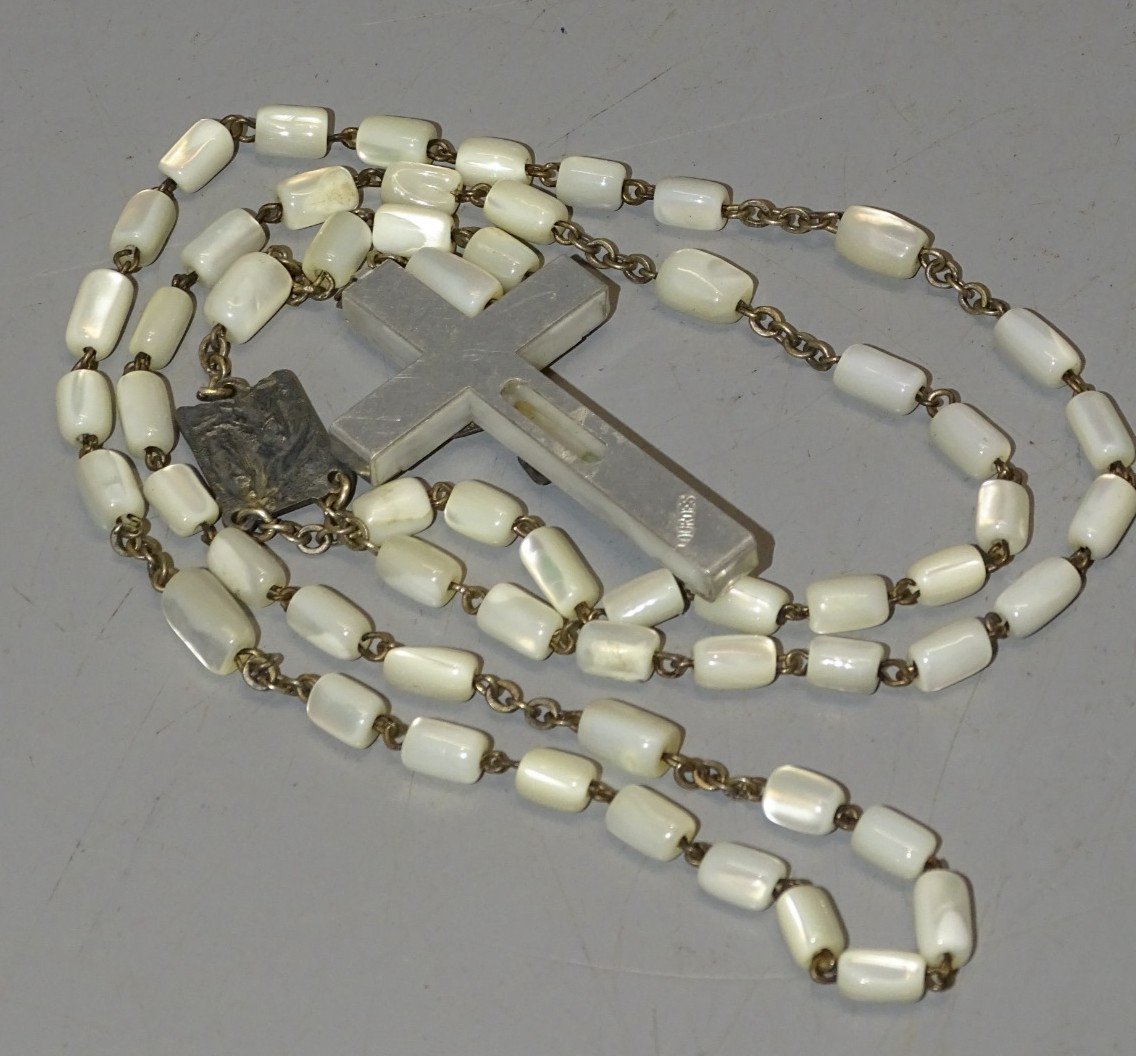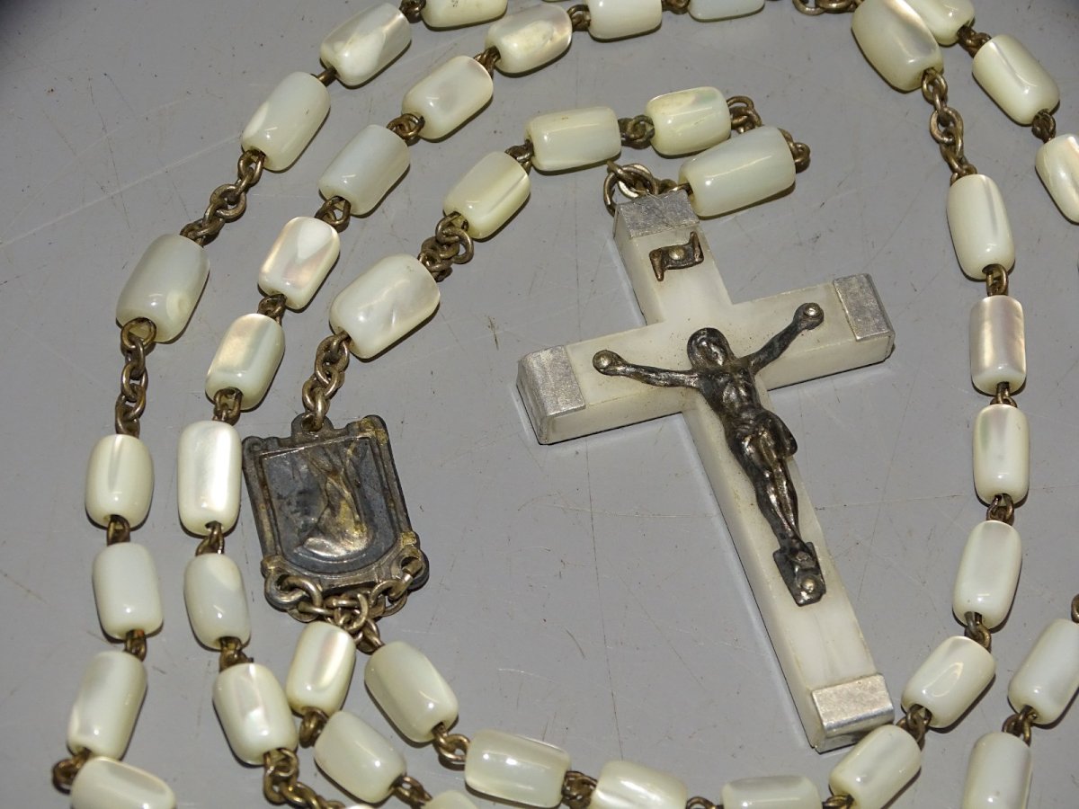Ancien chapelet perles de Nacre et croix en résine et aluminium marquée Lourdes  -  ( voir photos )  - jus de grenier, en bel état d'usage  - Réf. 1V250703/214 Longueur 44,8 cm - croix 4,6 x 2,8 cm - Poids 35 g   EXPEDITION POSSIBLE EN MONDIAL RELAY ou COLISSIMO sur demande TRES BON EMBALLAGE GARANTI    MERCI de BIEN REGARDER TOUTES les PHOTOS car ELLES FONT PARTIE INTEGRANTE de la DESCRIPTION et PERMETTENT de VOIR l'OBJET AU MIEUX  avec SES PETITS DEFAUTS EVENTUELS - État:Occasion: Objet ayant été utilisé. Consulter la description du vendeur pour avoir plus de détails ...Occasion: Objet ayant été utilisé. les éventuelles imperfections. Type:Christianisme Sous-type:Chapelet Pays de fabrication:France Matière:Nacre
