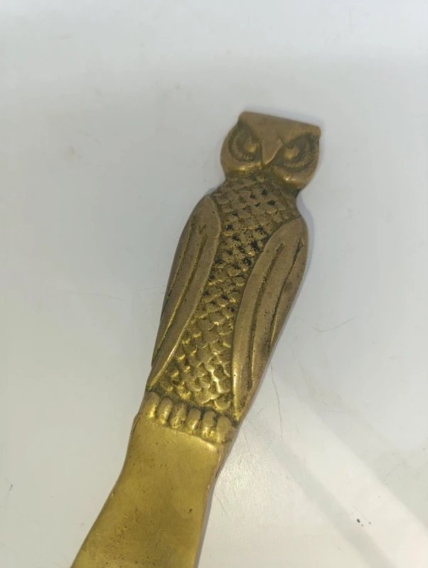 ancien chausse pied en laiton ou bronze à decor d hibou en bon etat