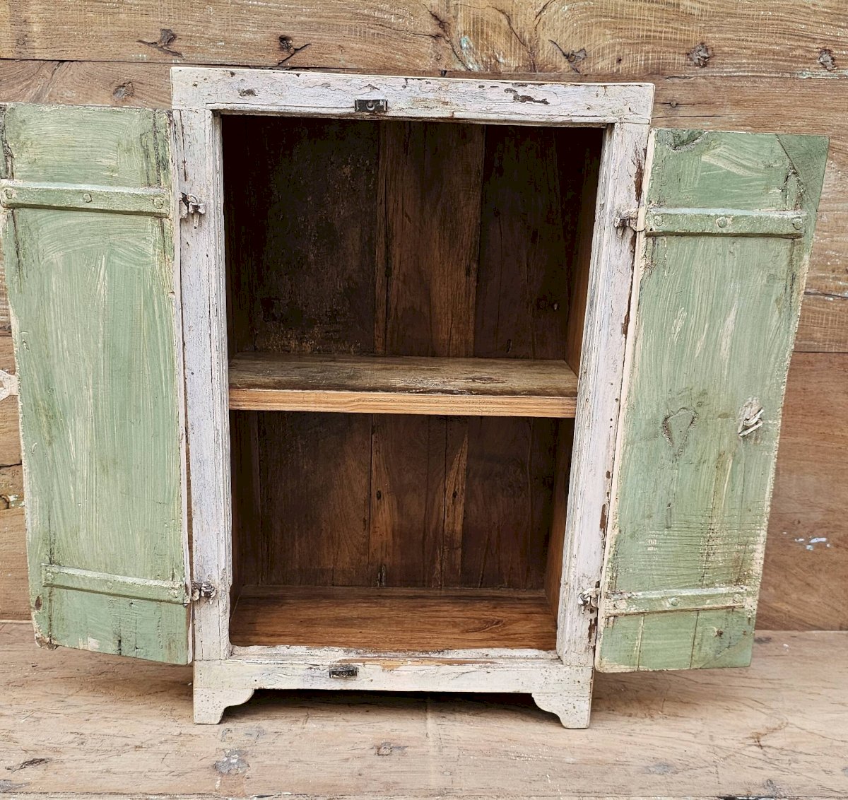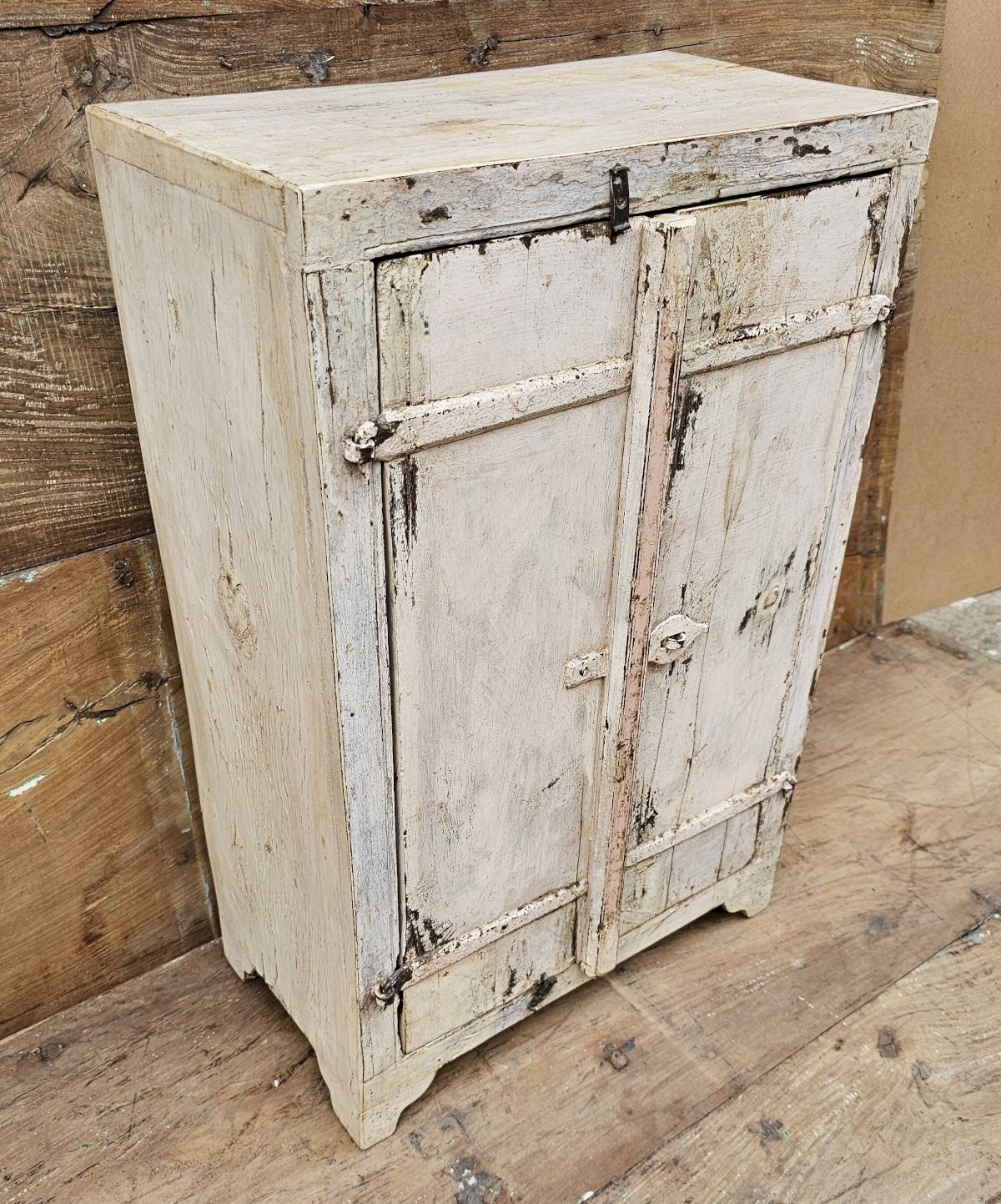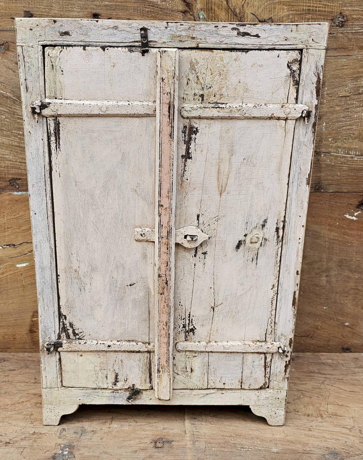 Ancien chevet - cabinet tribal en teck birman / Belles portes et patine d'origine - 46 x 25 x 70 cm - 18 kg - hauteur intérieure de haut en bas: 28-28 cm -prof int 21
