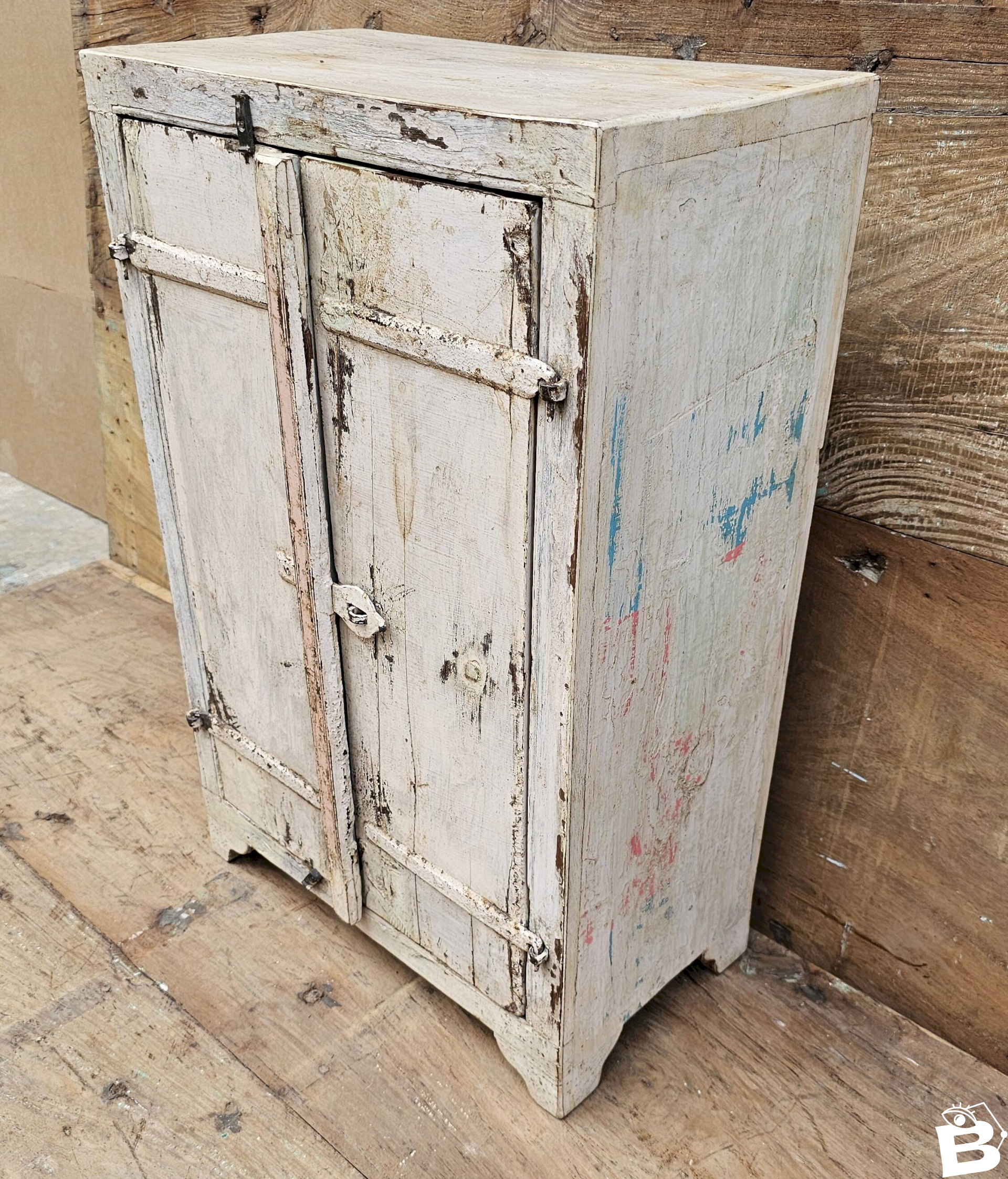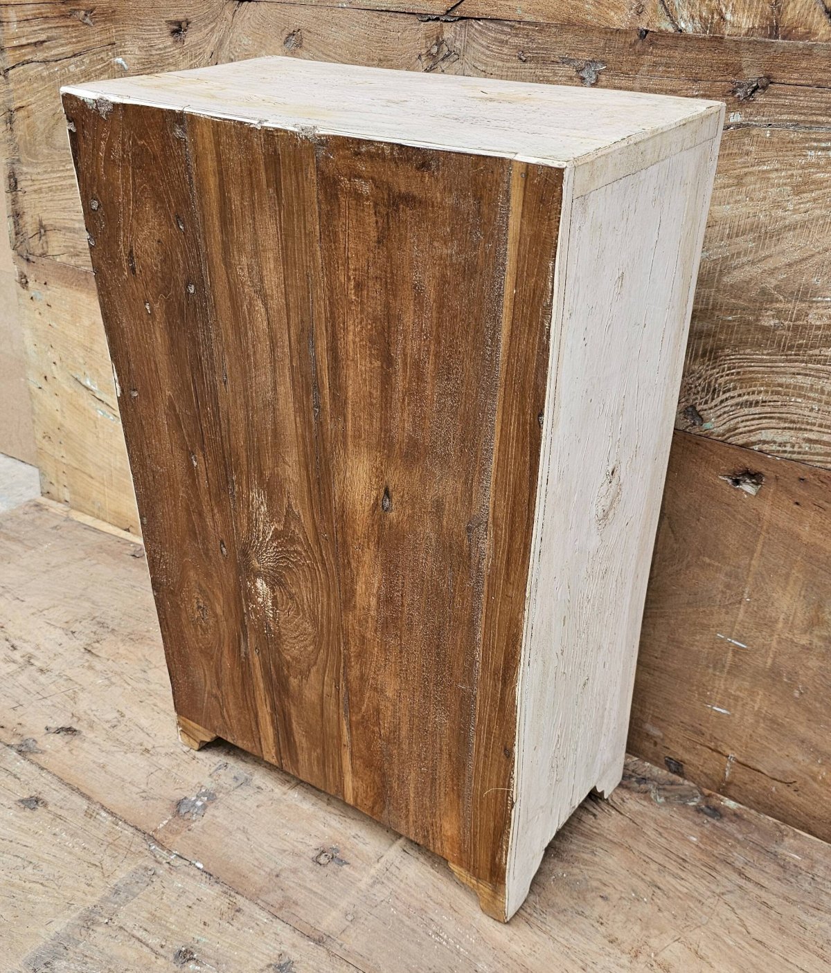Ancien chevet - cabinet tribal en teck birman Ethnique Blanc Bois