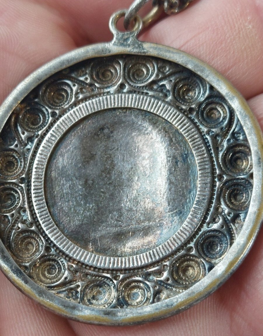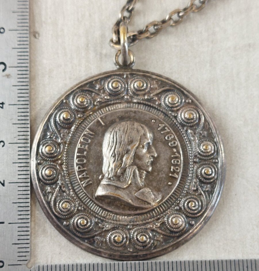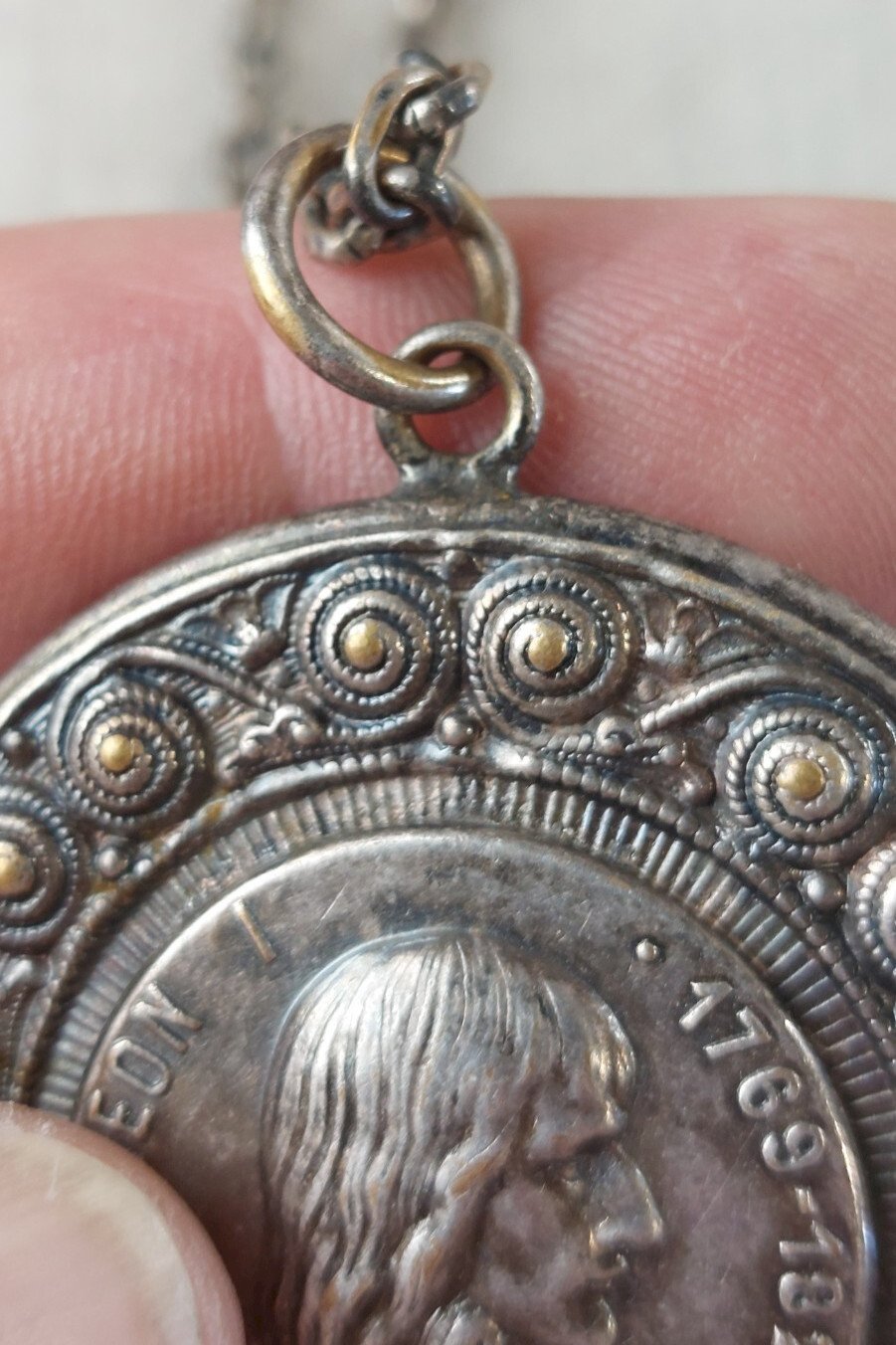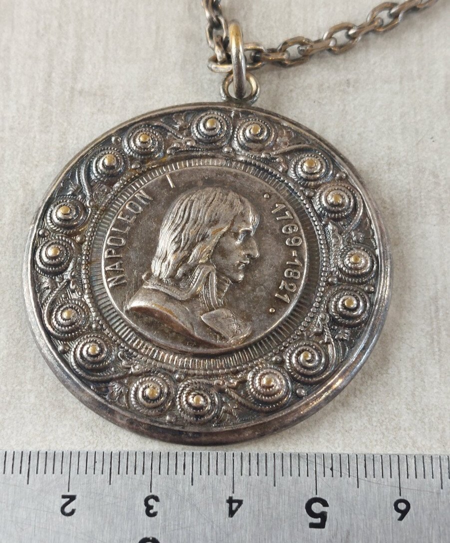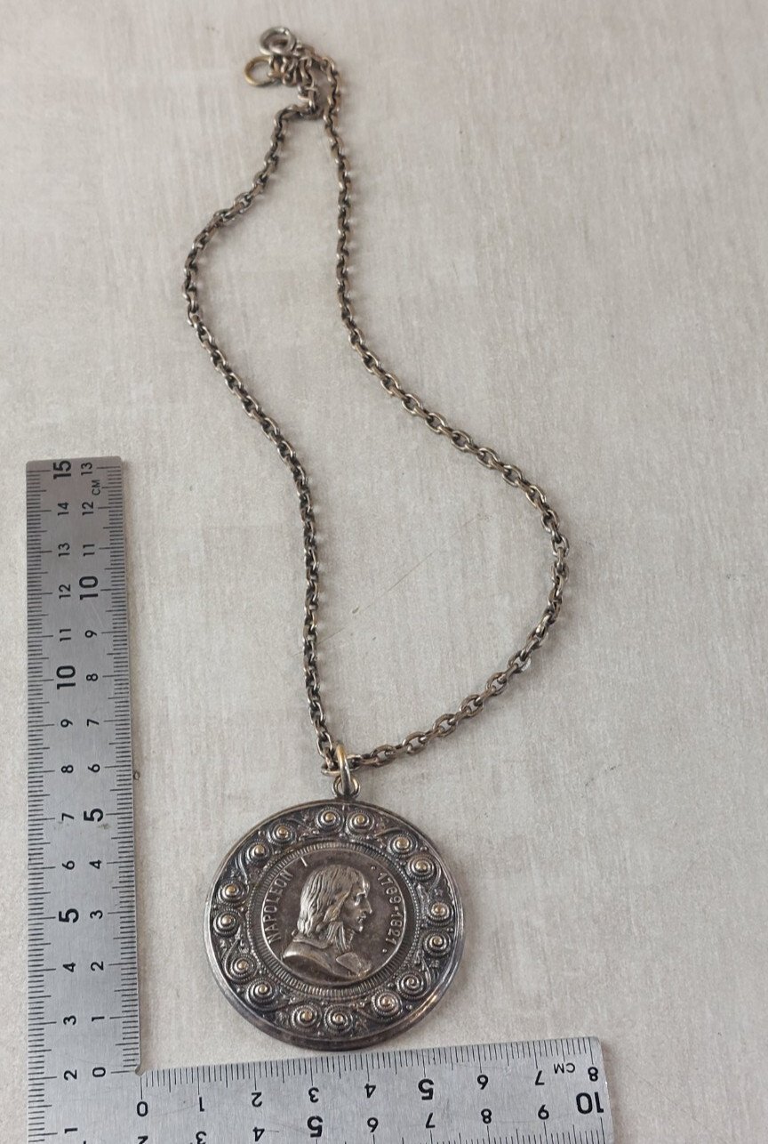 Ancien collier avec médaille / pendentif, Napoléon I, en métal argenté