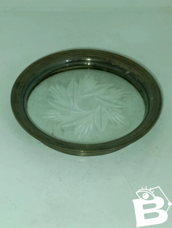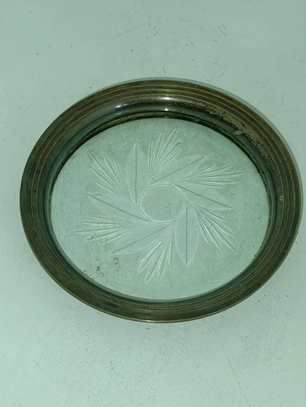 ancien dessous de bouteille en cristal et metal argenté en bon etat