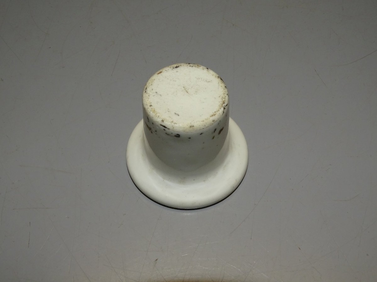 Ancien encrier de bureau d'écolier en porcelaine blanche - sans marque apparente  - en bel état, petites usures d'usage ( voir photos ) - Réf.42050225/79 Diamètre haut 4,8 cm - Hauteur 4 cm - Diamètre bas 2,3 cm - Poids 40 g   -  EXPEDITION POSSIBLE EN MONDIAL RELAY ou COLISSIMO sur demande TRES BON EMBALLAGE GARANTI  MERCI de BIEN REGARDER TOUTES les PHOTOS car ELLES FONT PARTIE INTEGRANTE de la DESCRIPTION et PERMETTENT de VOIR l'OBJET AU MIEUX - État:Occasion: Objet ayant été utilisé. Consulter la description du vendeur pour avoir plus de détails ...Occasion: Objet ayant été utilisé. les éventuelles imperfections. Matériaux provenant de:France Nombre de pièces:1 Type:Encrier Période:1900-1980 Matière:Céramique, Porcelaine