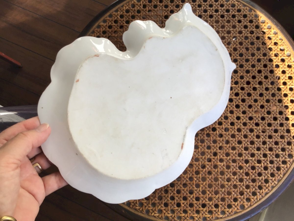 ANCIEN ensemble bol et SOUS-TASSES EN FINE PORCELAINE DÉCOR violettes