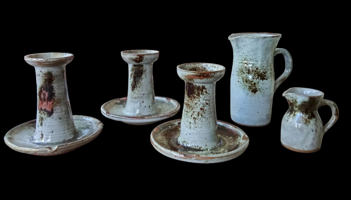 Ancien Ensemble Céramique Bougeoir Pichet Grès Vintage Chantal Thierry Robert