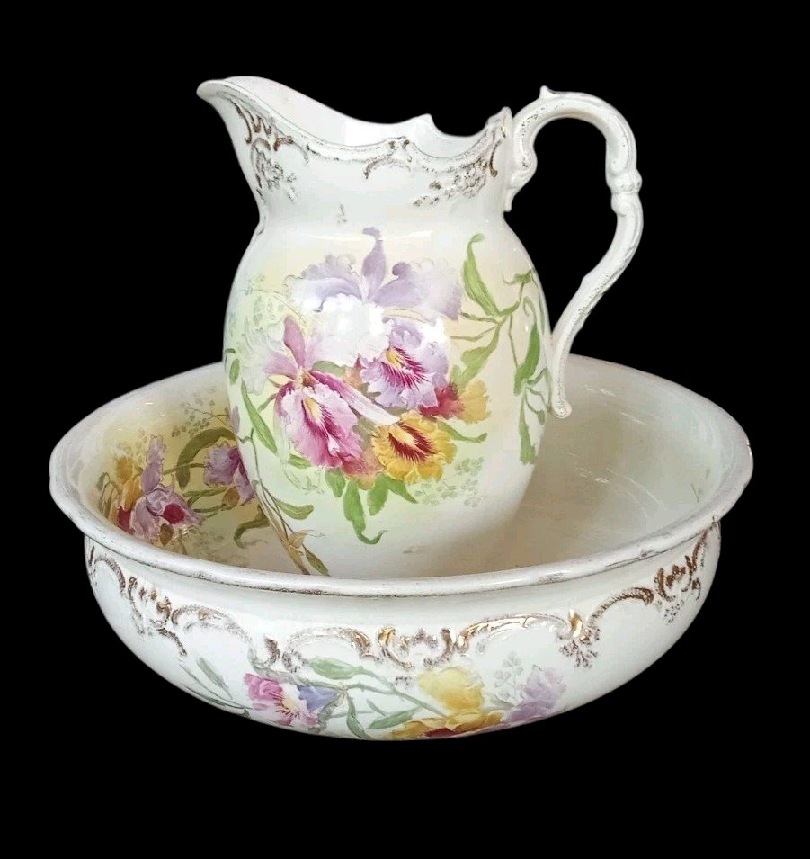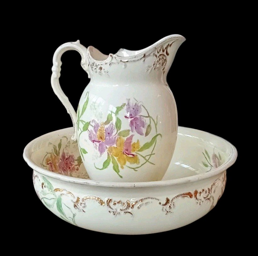 Ancien Ensemble de toilette Broc et cuvette De belle taille Royal bonn Franz Mehlen Décor.magnifique Bon état 2 éclats sous la vasque voir.photos Vasque hauteur 14.5 cm Diamètre 42.9 cm Broc Hauteur 33.9 cm Largeur avec bec et anse 25.5 cm Livraison en deux colis