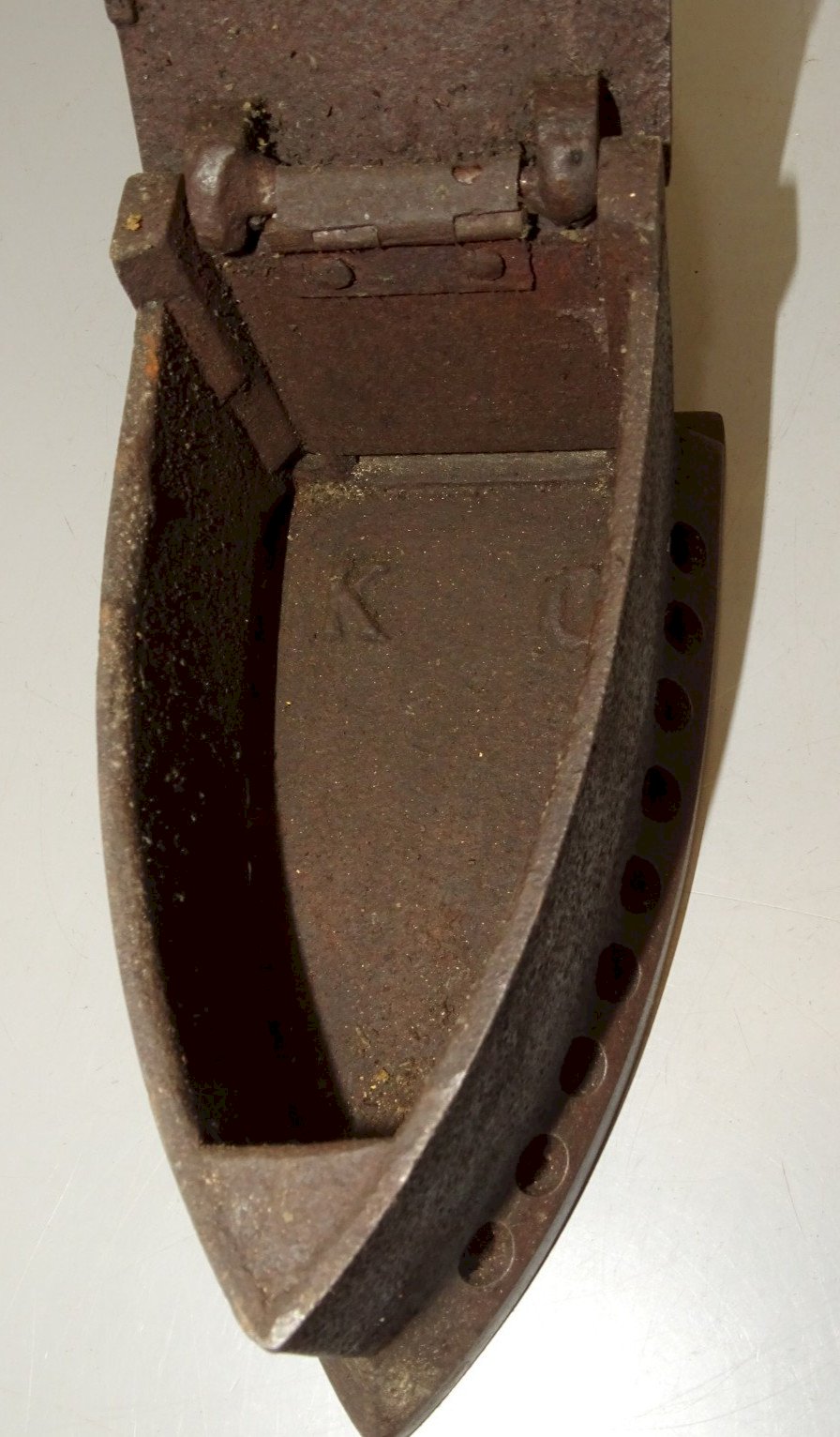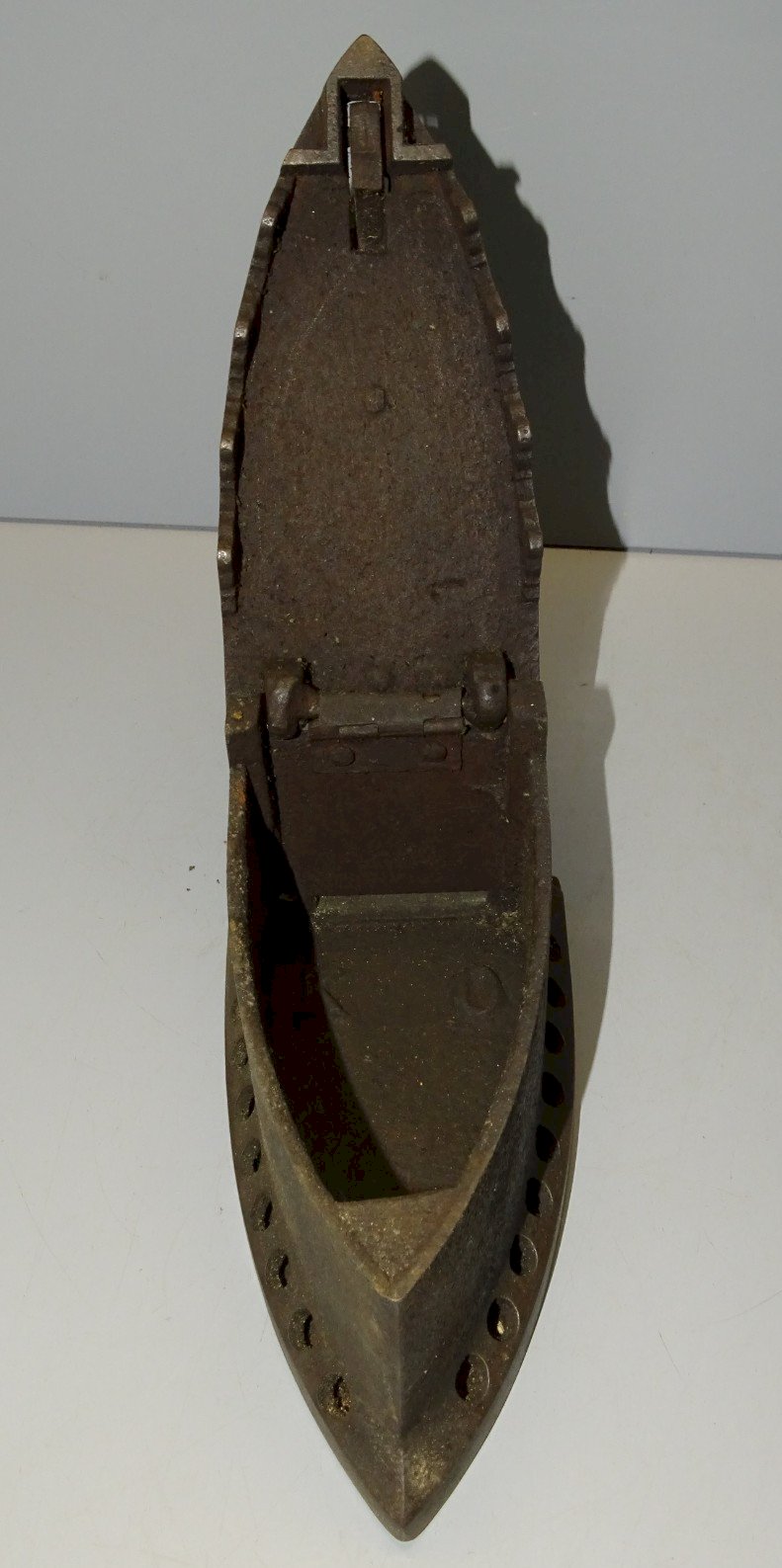 Joli ancien fer à braises en fonte, avec un K en épaisseur à l'intérieur - bout fermoir intérieur cassé, on ne peut donc pas le transporter par la poignée sans qu'il s'ouvre( voir photos ) - Réf.42240725/103 -  Longueur 18,2 cm - largeur 9,2 cm - Hauteur 19,7 cm -  Poids 2,1 kg  - EXPEDITION POSSIBLE EN MONDIAL RELAY ou COLISSIMO sur demande TRES BON EMBALLAGE GARANTI MERCI de BIEN REGARDER TOUTES les PHOTOS car ELLES FONT PARTIE INTEGRANTE de la DESCRIPTION et PERMETTENT de VOIR l'OBJET AU MIEUX - Type:Fer à repasser Origine:France Sous-type:fer plaque Style:Antiquité Matière:Fonte