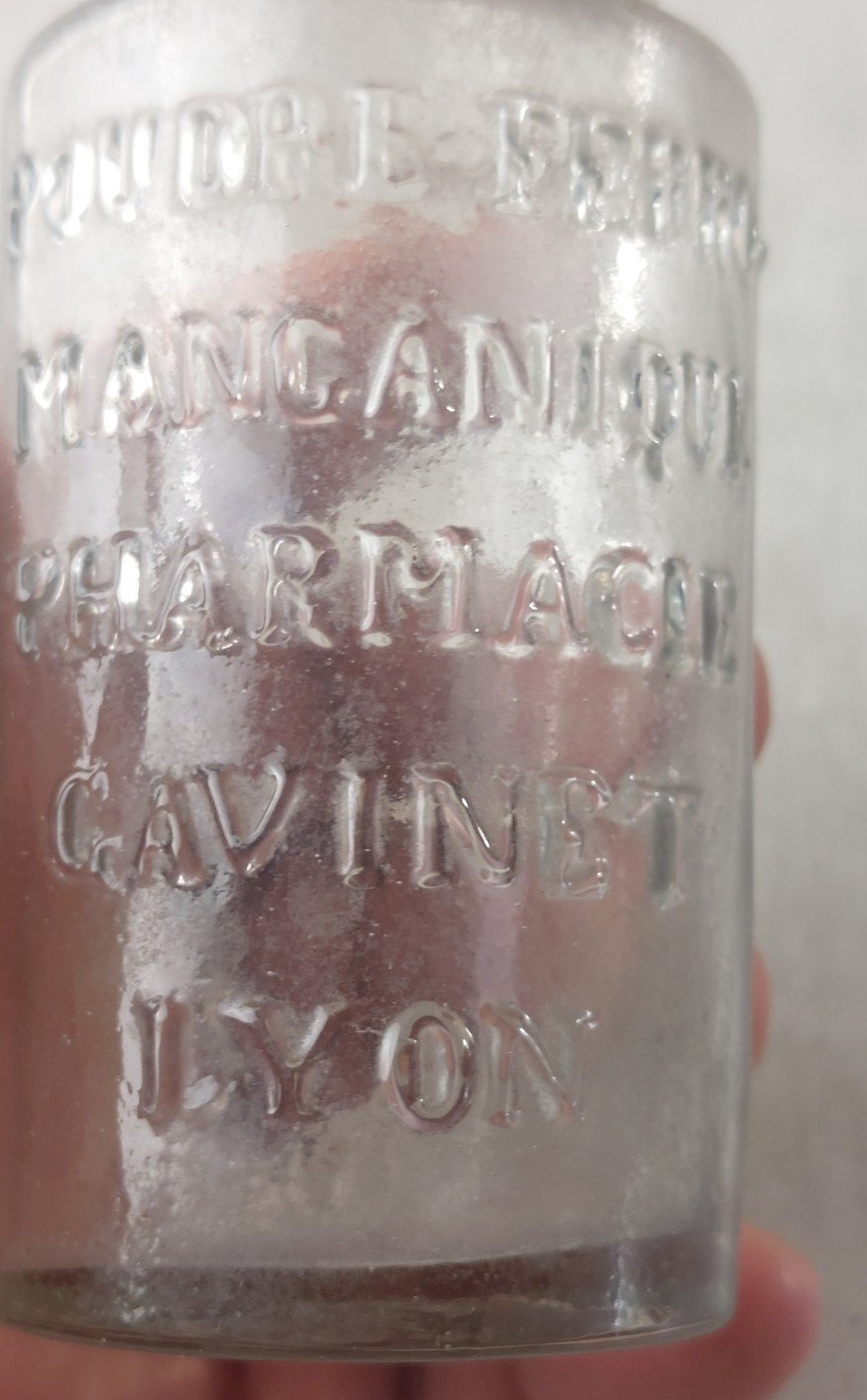 Ancien flacon d'apothicaire, Poudre Ferro-manganique, Pharmacie Cavinet Lyon