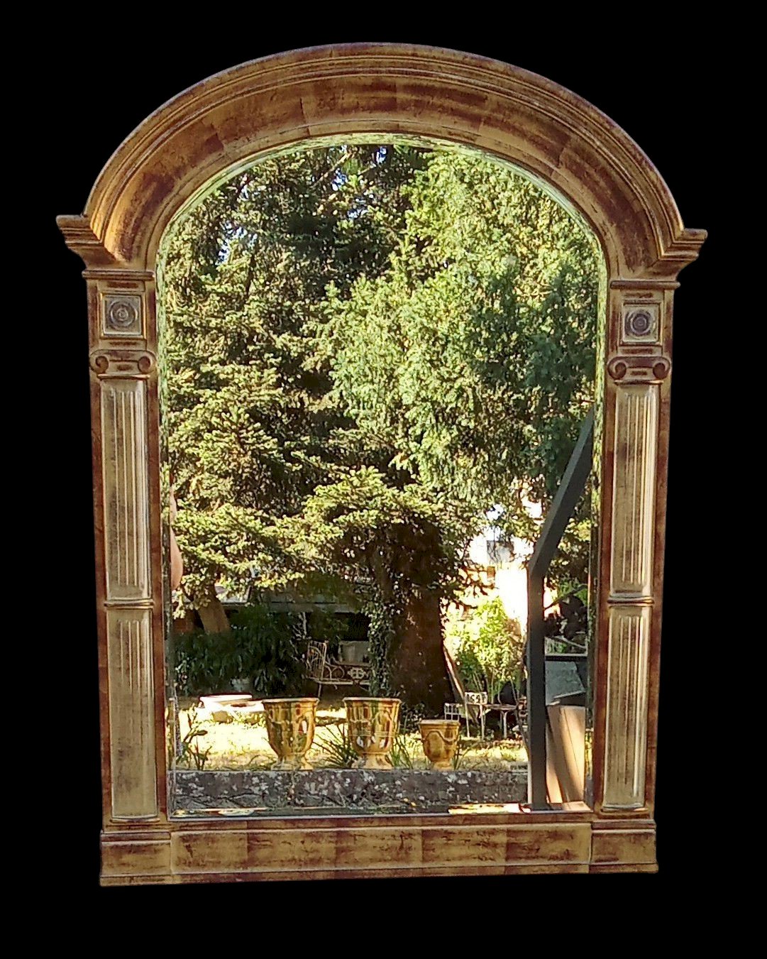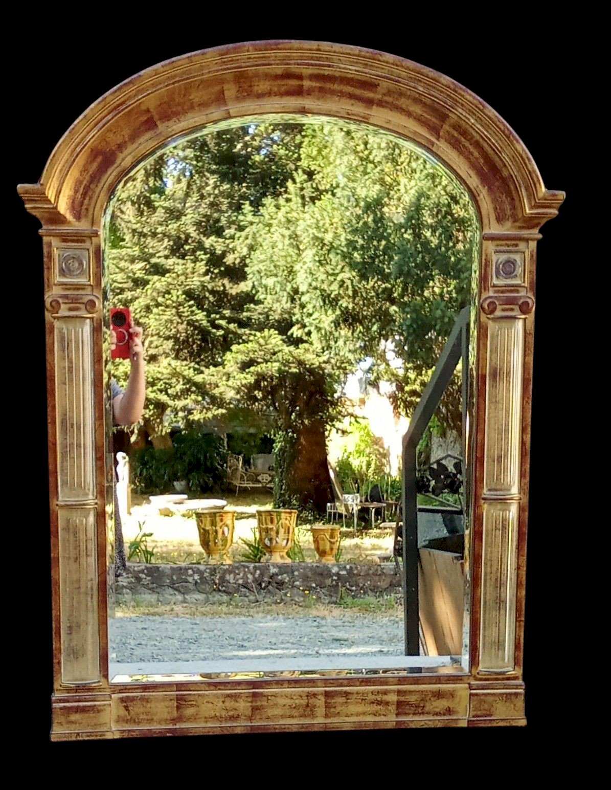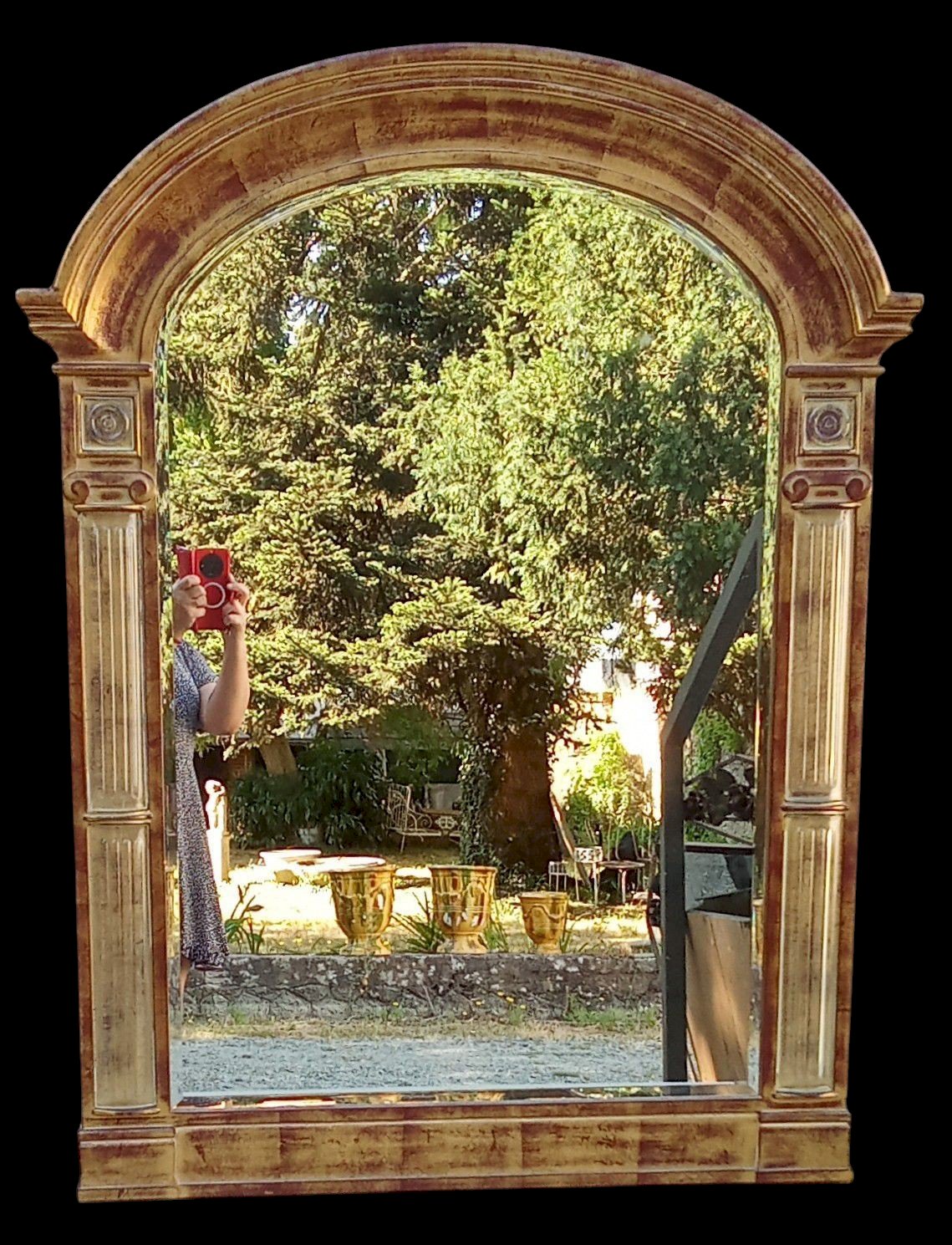 Ancien Grand miroir vintage Résine Doré Altuglas old Golden mirror