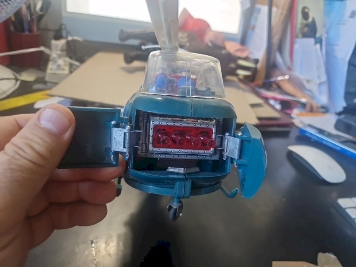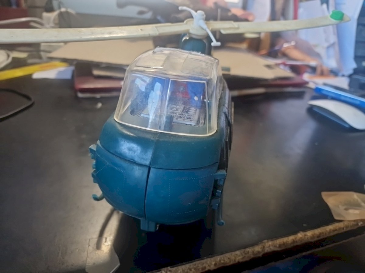 le compartiment piles et propre , jai essayé de tester avec des piles usées ; jai entendu le moteur parler un peu .  lattache de l'helice est un peu cassée , il faudra restaurer a ce niveau . elle tient pas .. État:Occasion: Objet ayant été utilisé. Consulter la description du vendeur pour avoir plus de détails ...Occasion: Objet ayant été utilisé. les éventuelles imperfections. Pays d'origine:Japon Véhicule/engin:HELICOPTERE Type:Jouets Miniatures Marque:S.H. Matière:Plastique