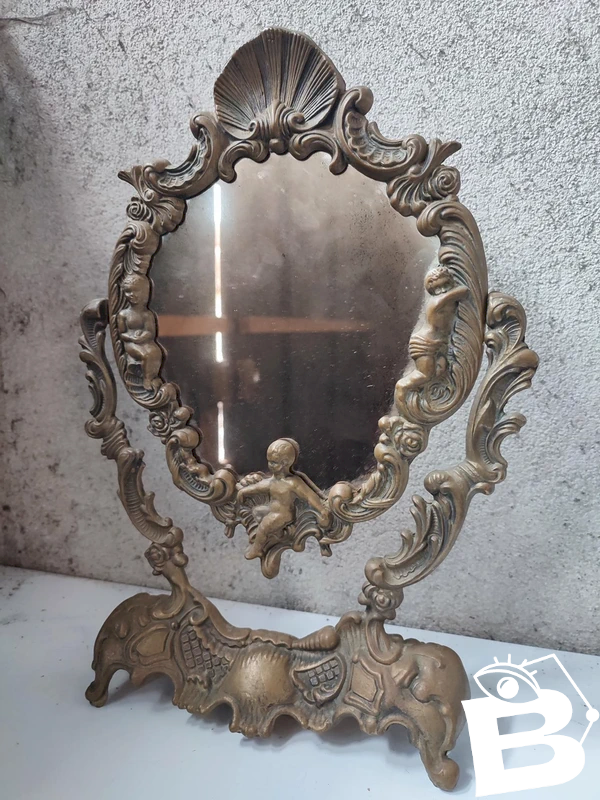 ancien miroir en bronze a decor de cherubin en bon etat