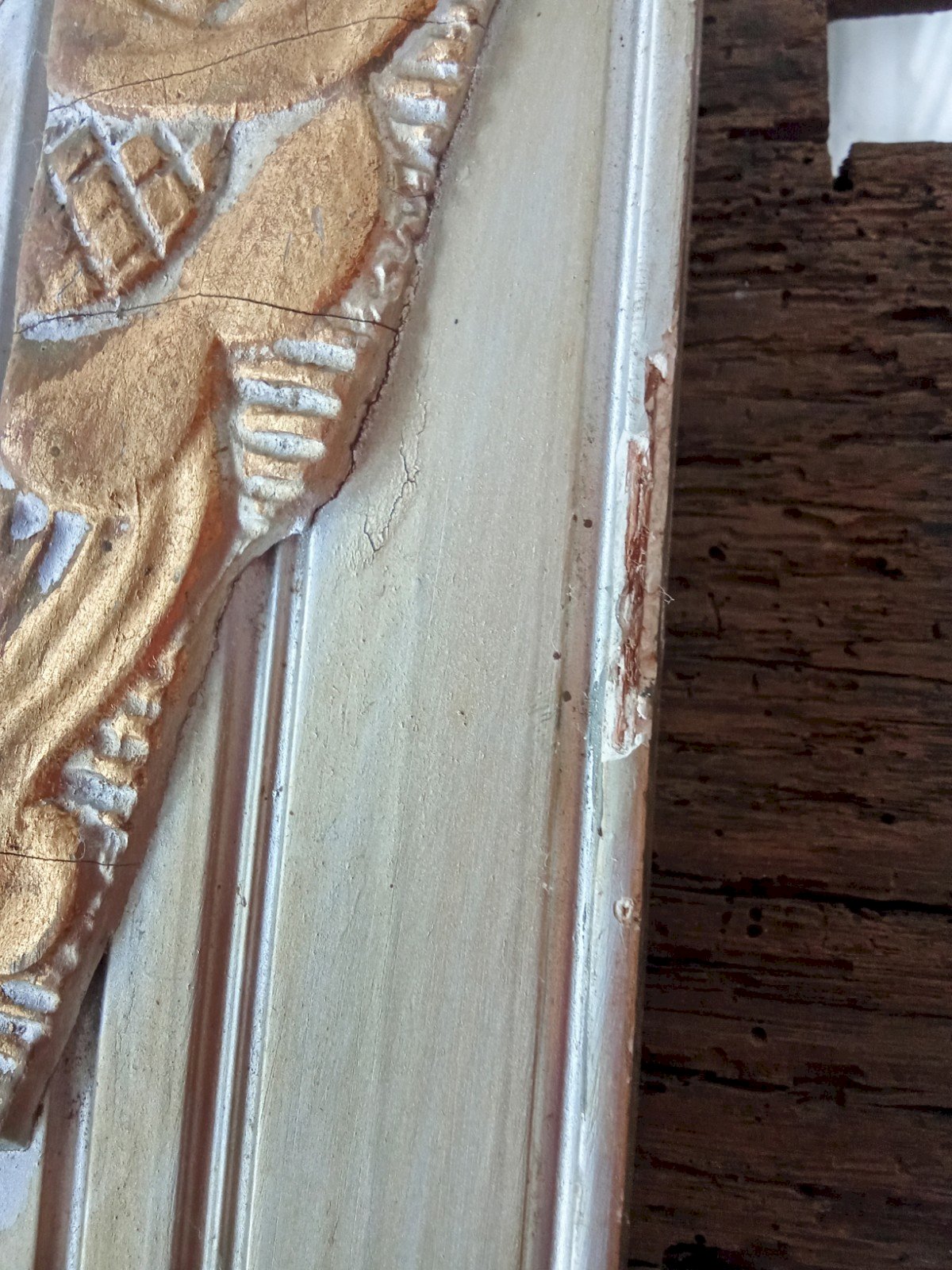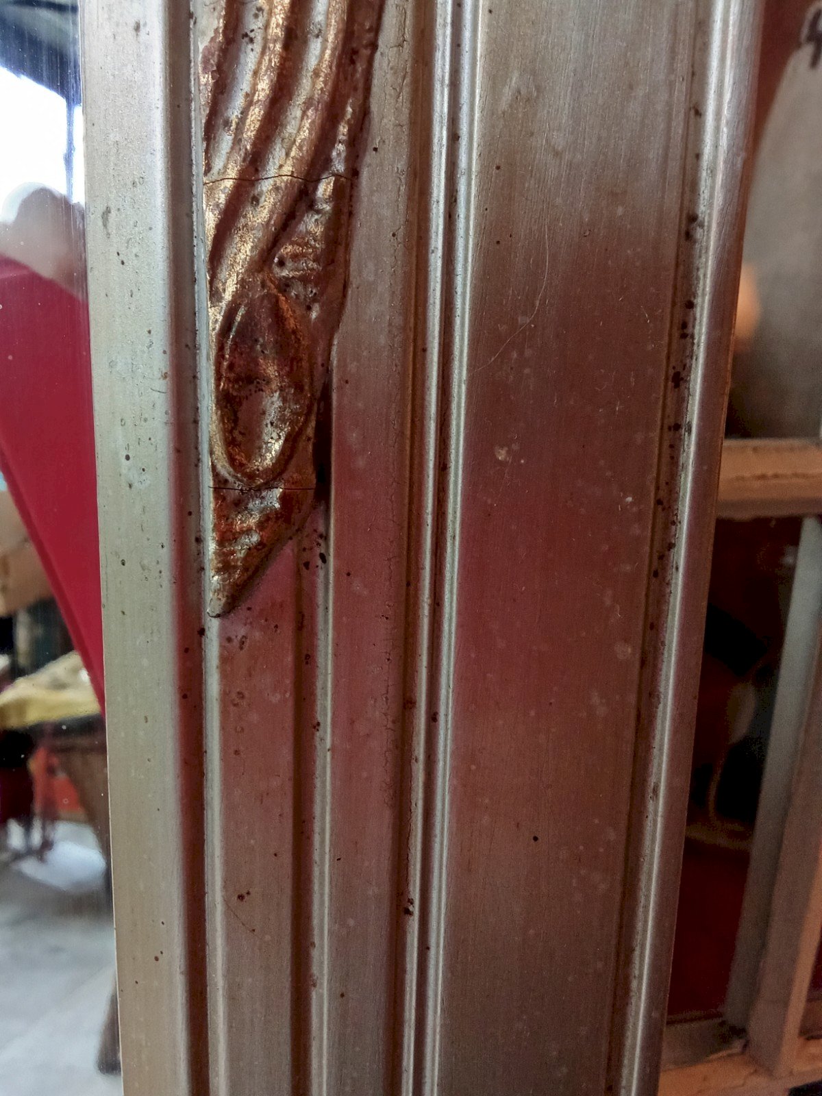 Ancien Miroir Glace Art Déco Bois Doré Et Métal Années 1930 Old Mirror
