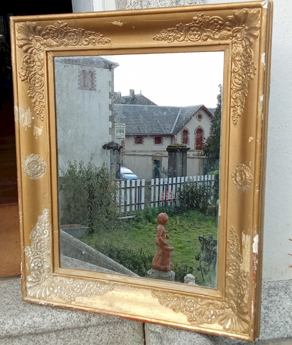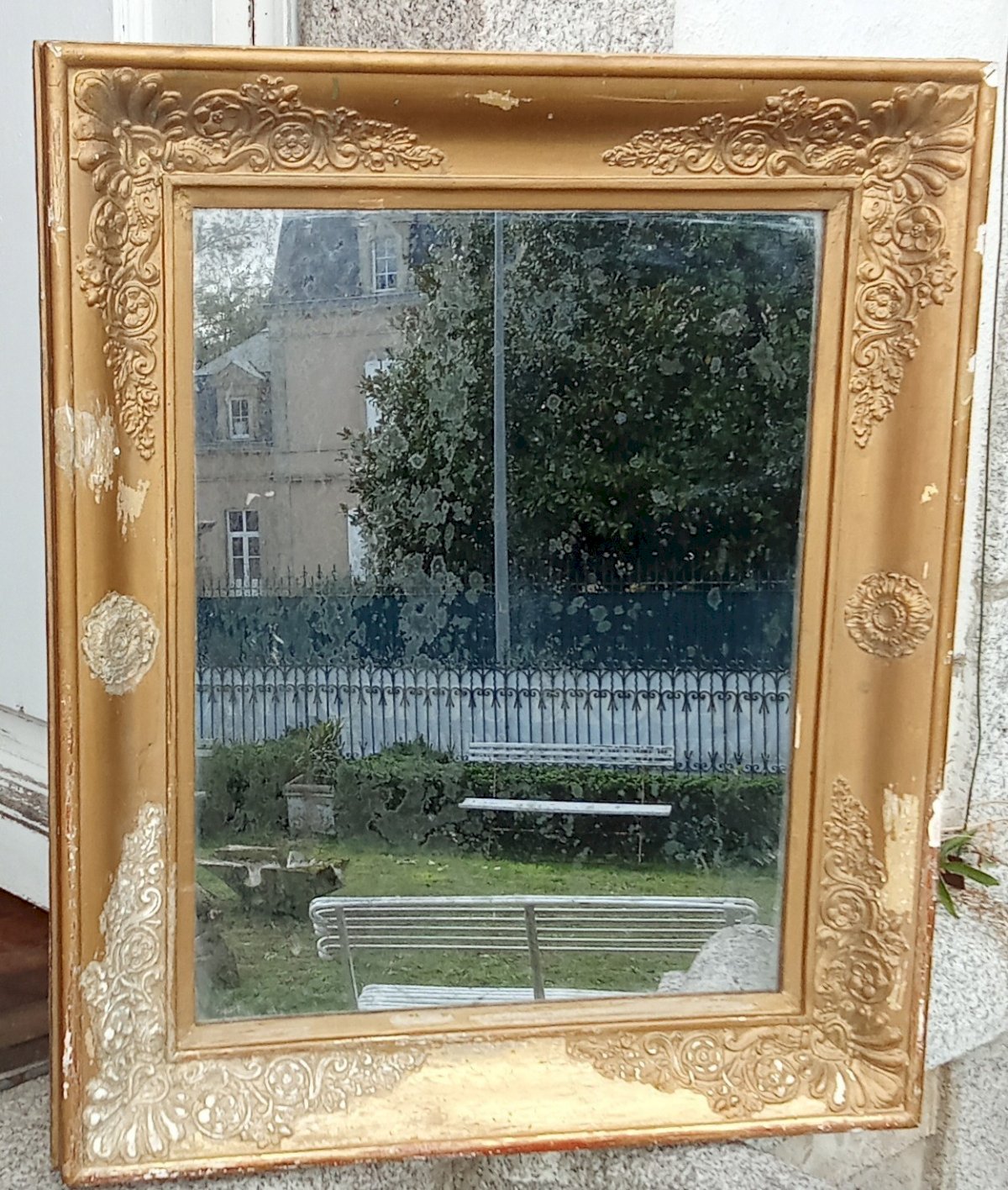 Ancien Miroir Doré Époque Empire / Restauration  Datant du 19 ème siècle Miroir au mercure Très chic Belle pièce Bon état Défauts et Usure du tain visibles sur les photos  Dimensions 60 cm x.71.9 cm Épaisseur  5.9 cm Livraison possible par transporteur.me contacter pour le tarif selon votre région Couleur du cadre:Doré