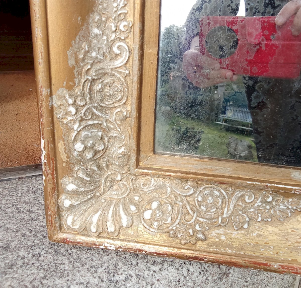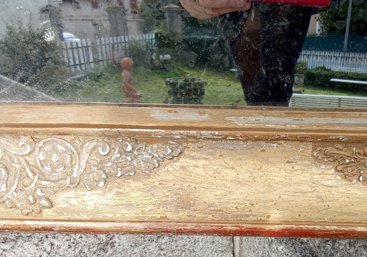 Ancien Miroir Mercure cadre doré Epoque Empire Restauration 19 Ème Siècle