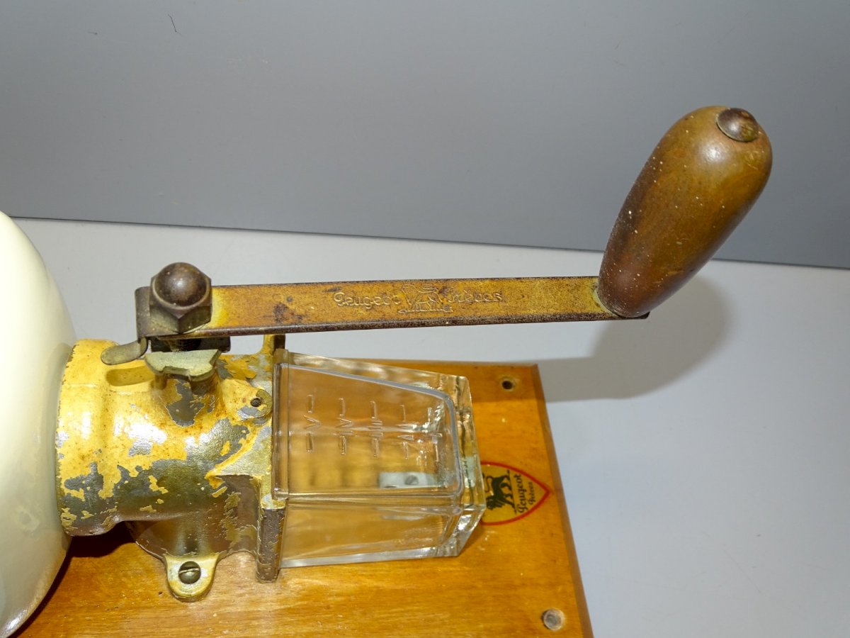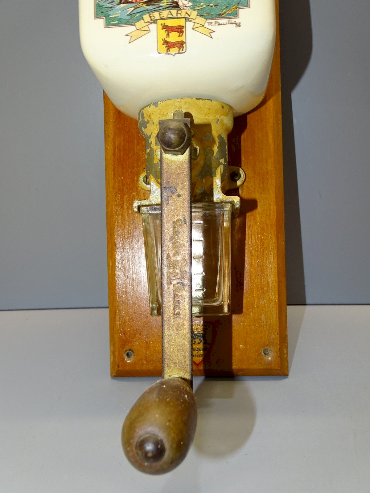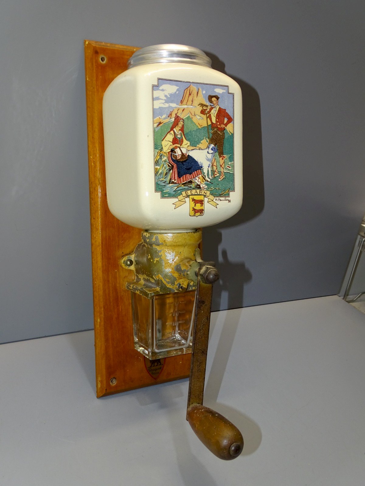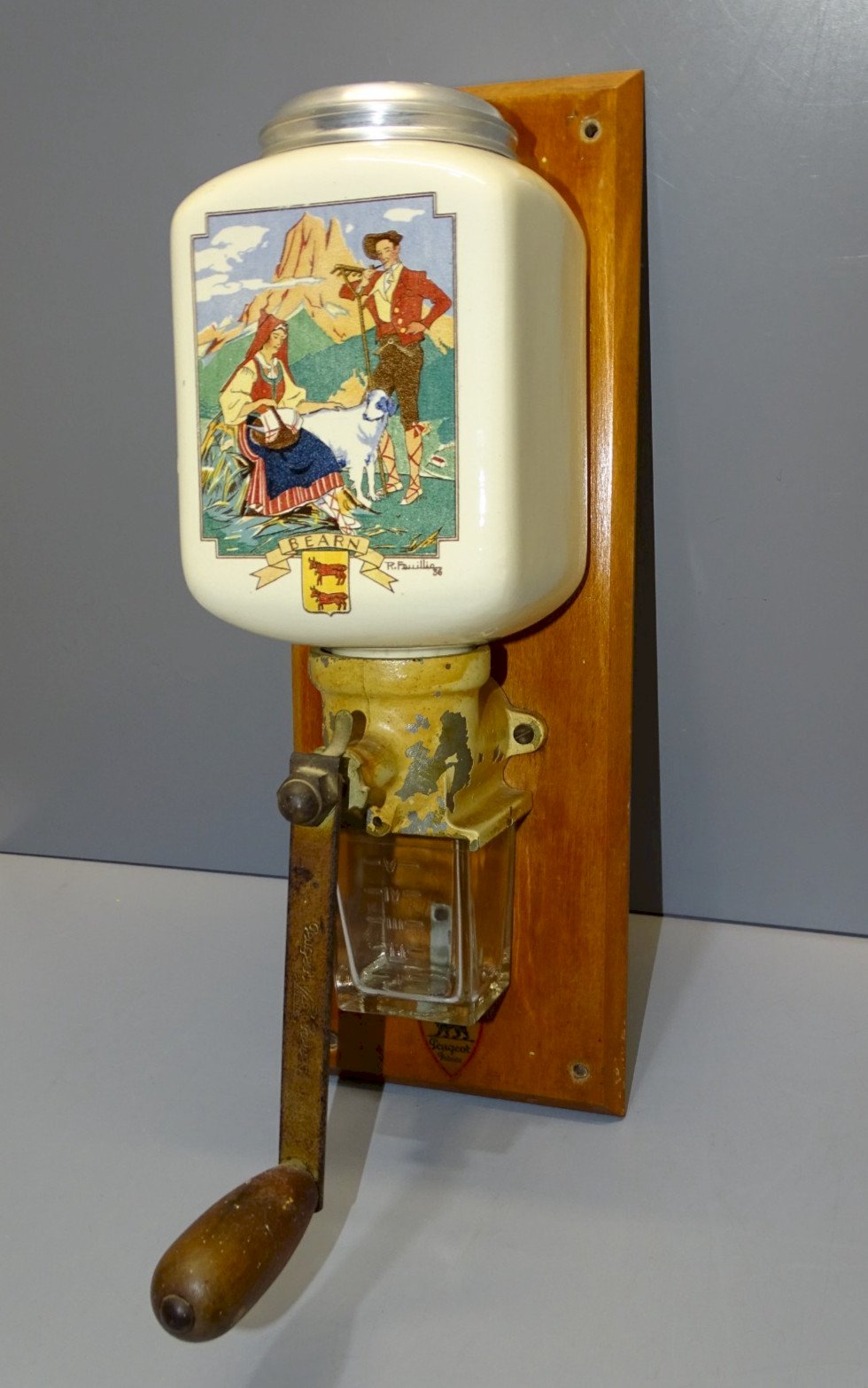 JOLI ANCIEN MOULIN à café Mural SARREGUEMINES - moulin des régions P FOUILLIO BEARN - En superbe état sauf la peinture de la partie broyeur qui tombe ( voir photos ) - dans son jus de trouvailles, complet et en bel état d'usage - Réf 1V251219/107 - Plaque bois 35,5 x 12,8 cm - Epaisseur max ( poignée ) 18,6 cm - Poids 1,382 kg - EXPEDITION POSSIBLE EN MONDIAL RELAY ou COLISSIMO sur demande TRES BON EMBALLAGE GARANTI MERCI de BIEN REGARDER TOUTES les PHOTOS car ELLES FONT PARTIE INTEGRANTE de la DESCRIPTION et PERMETTENT de VOIR l'OBJET AU MIEUX avec SES PETITS DEFAUTS EVENTUELS - État:Occasion: Objet ayant été utilisé. Consulter la description du vendeur pour avoir plus de détails ...Occasion: Objet ayant été utilisé. les éventuelles imperfections. Nombre de pièces:1 Couleur:Multicolore Type:Moulin à café mural Période:Art Déco, 1920-1939 Pays d'origine:France Sous-type:moulin Matière:BOIS & Céramique Genre:Industriel