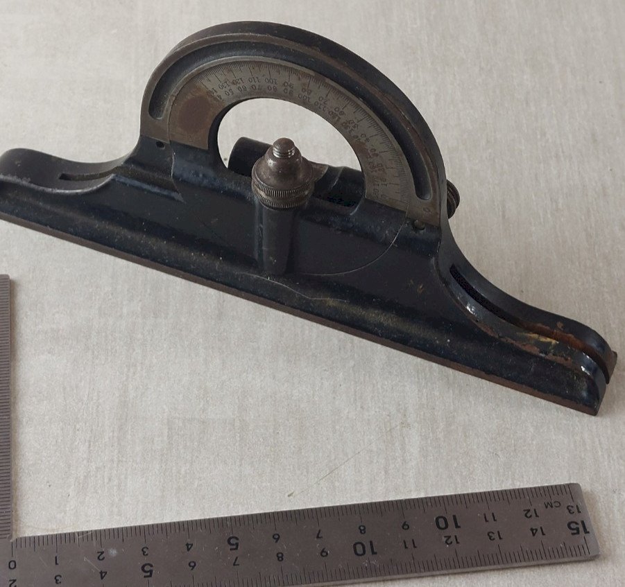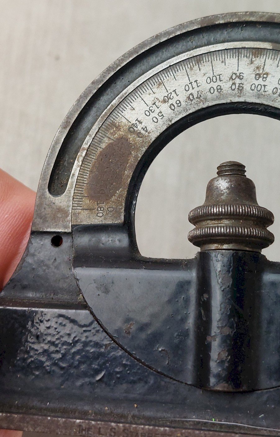 Ancien outil / tête de rapporteur, Starrett 490, USA en bon état, non testé, des traces d'oxydation marqué The LS Starrett Co, USA n° 490 longueur 17,8 cm hauteur 8,3 cm voir photos  Consultez mes autres objets  !  réduction des frais de port en cas d'achat groupé Authenticité:Original Type:Objet de métier Période:Design du XXème Sous-type:Outil Matière:métal