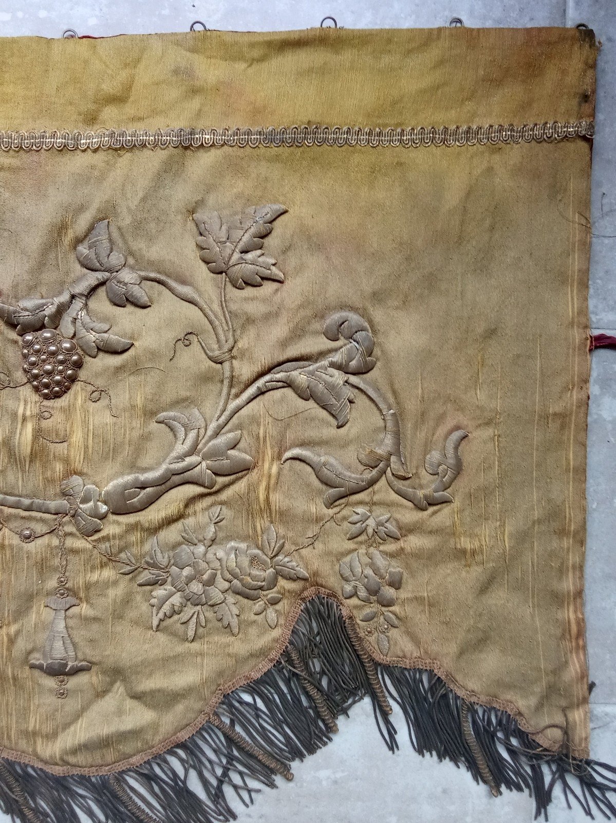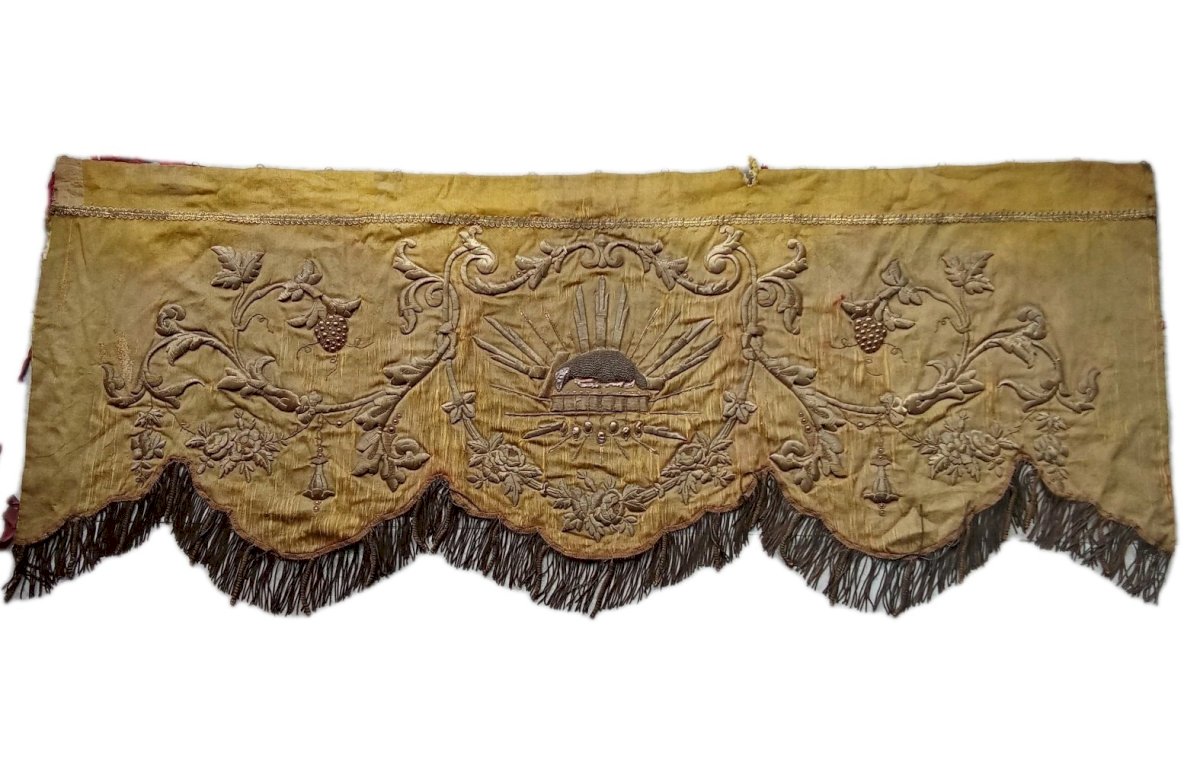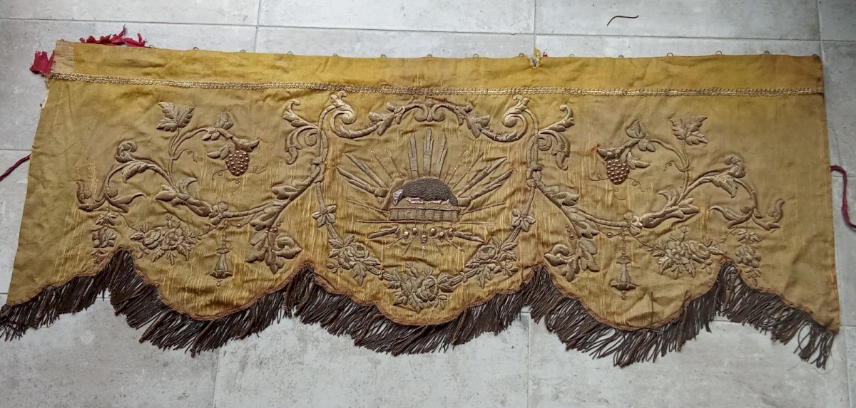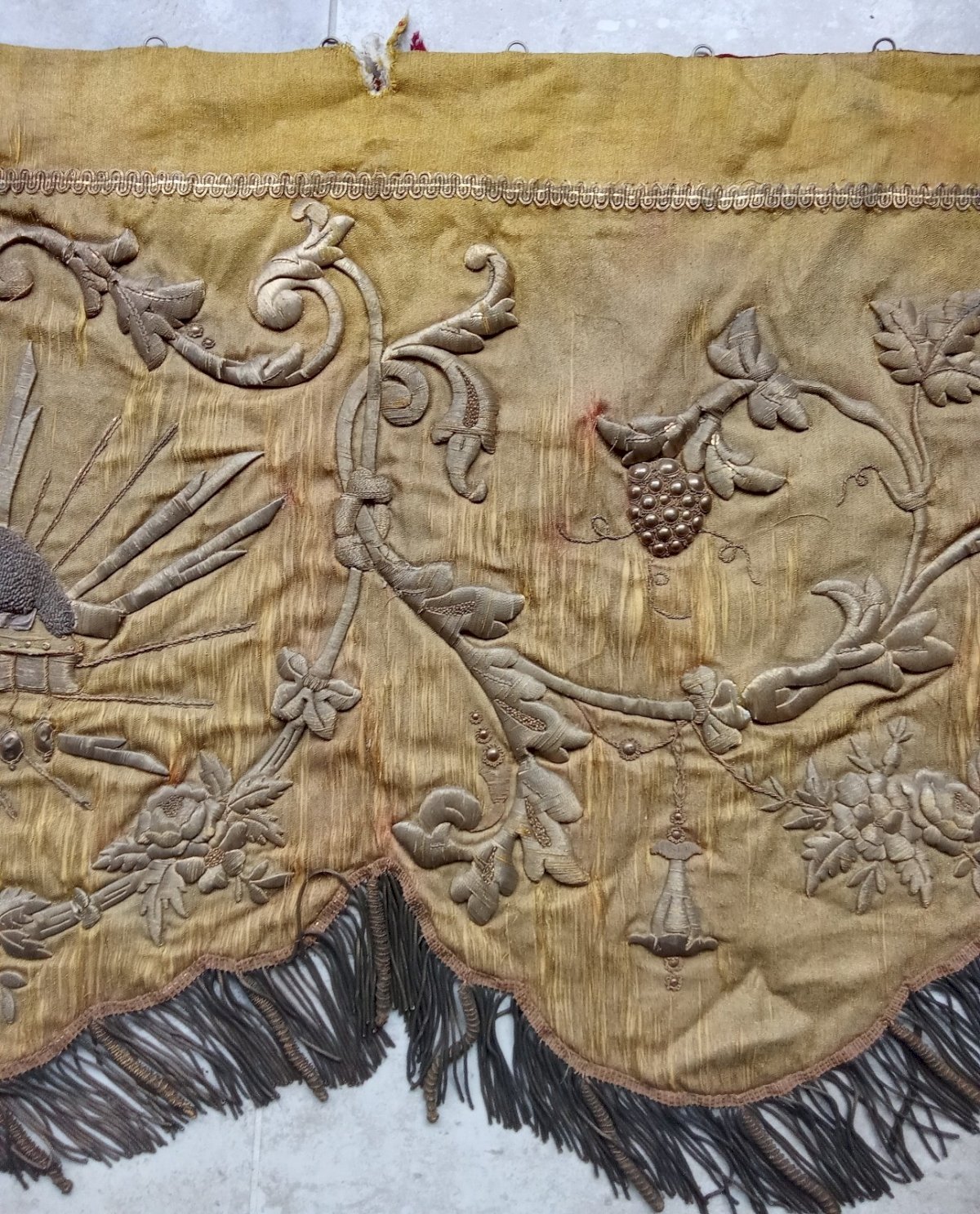 Ancien Parement Autel Eglise Broderie Fils D Or Agneau Pascal 19 Ème Religieux