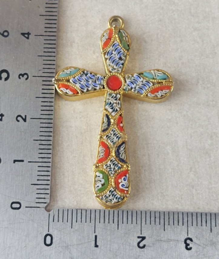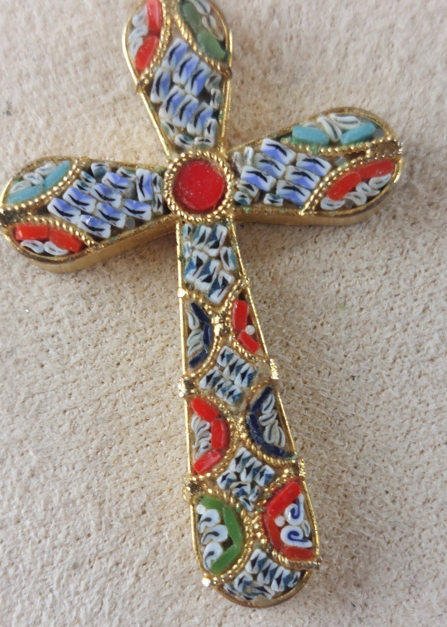Ancien pendentif, croix religieuse, en micro mosaïque