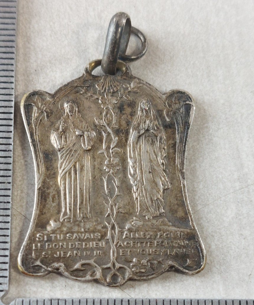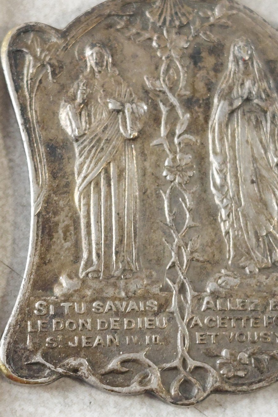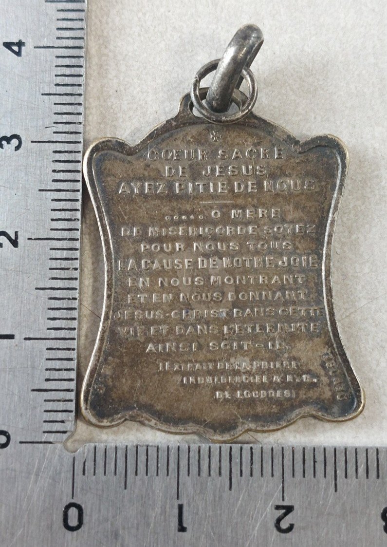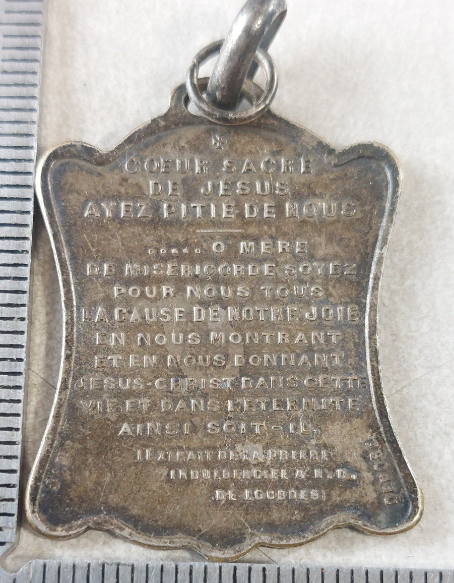 Ancien pendentif / médaille coeur sacré de Jésus, en métal argenté