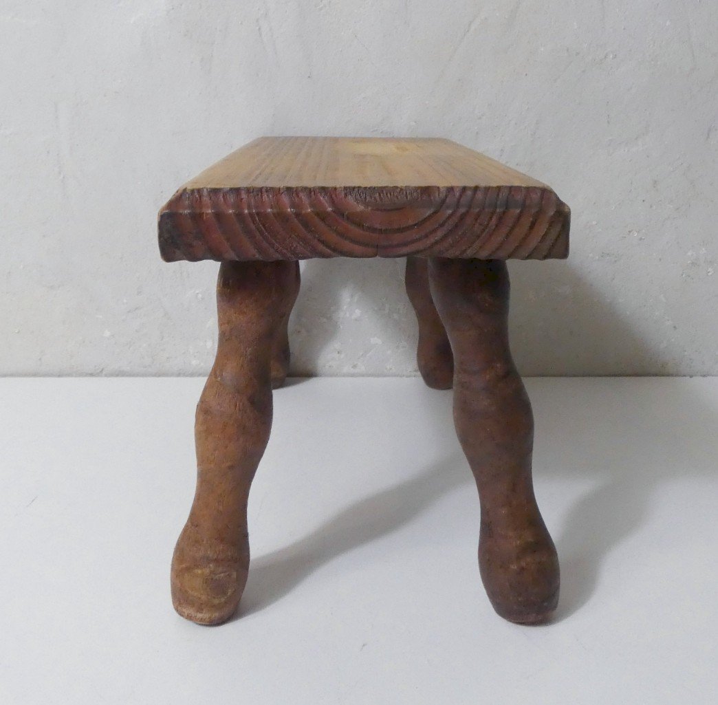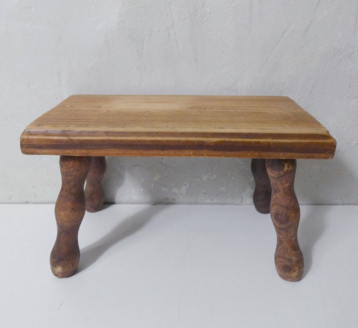 Ancien petit banc en bois massif. Hauteur: 18,5 cm. Largeur: 30 cm. Profondeur: 15 cm. En très bon état. Des traces d'usage et de vieillissement superficielles. Parfaitement stable et robuste. Type:banc Période:Design du XXème Matière:bois massif