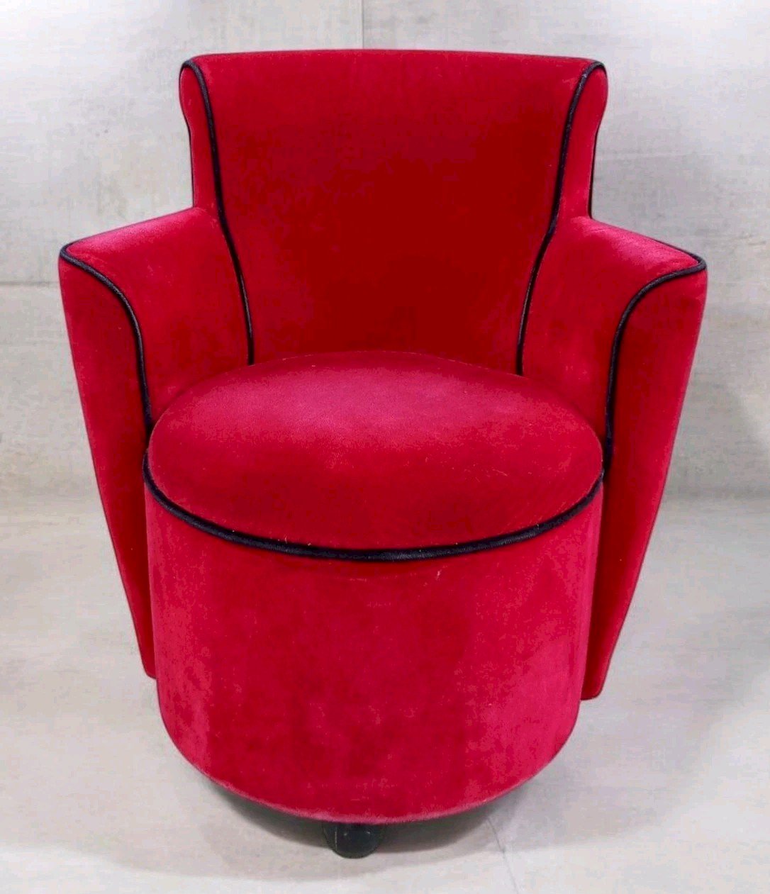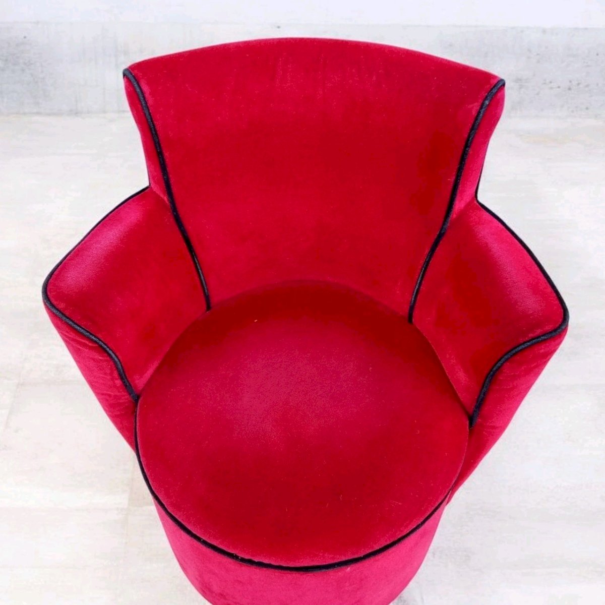 Joli Fauteuil Design Velours Rouge Vauzerelle Très beau design Confortable Bel état 2 petits défauts sur le velours peu visibles voir photos Pieds en bois Pièce de qualité Hauteur  totale 74 cm Hauteur assise 41 cm Largeur d accoudoir à accoudoir 64.7 cm Diamètre assise 46 cm Livraison possible par transporteur.me.contacter pour le tarif selon votre région Couleur:Rouge Type:Fauteuil