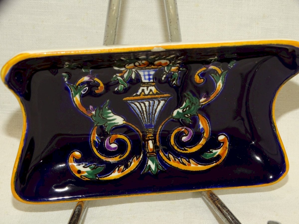 -ANCIEN PETIT VIDE POCHE ou PORTE SAVON CERAMIQUE GIEN RENAISSANCE VITRINE D