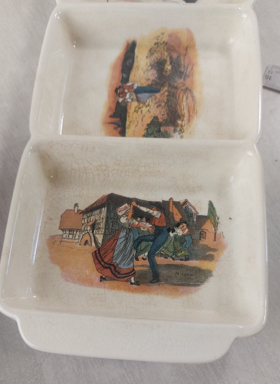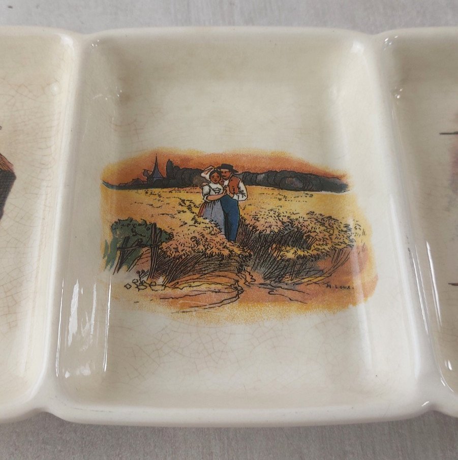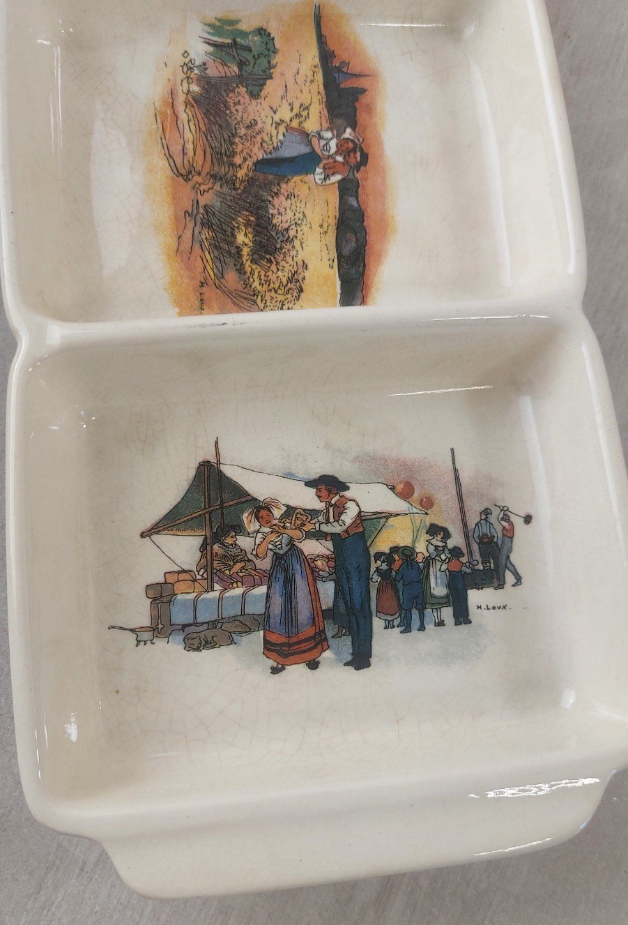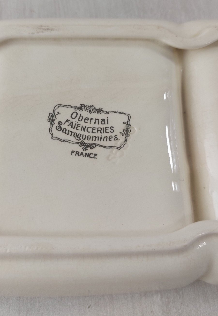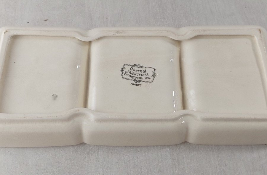 Ancien plat à 3 compartiments / serviteur, Obernai, céramique de Sarreguemines
