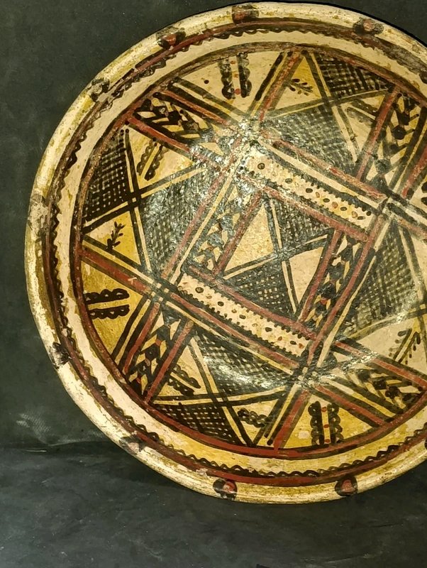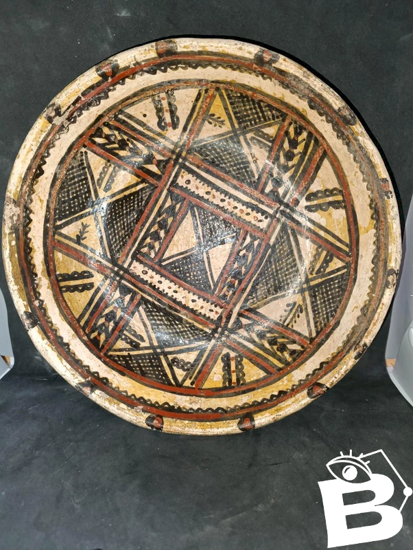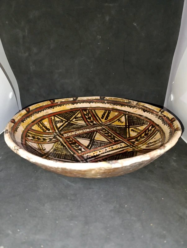 ancien plat creux d'origine nord africain (kabyle?) en etat correct quelques egrenures sur le contour et usures du fond d'usages (voir photos) daimetre 31cm hauteur 6.5cm epoque a definir...
