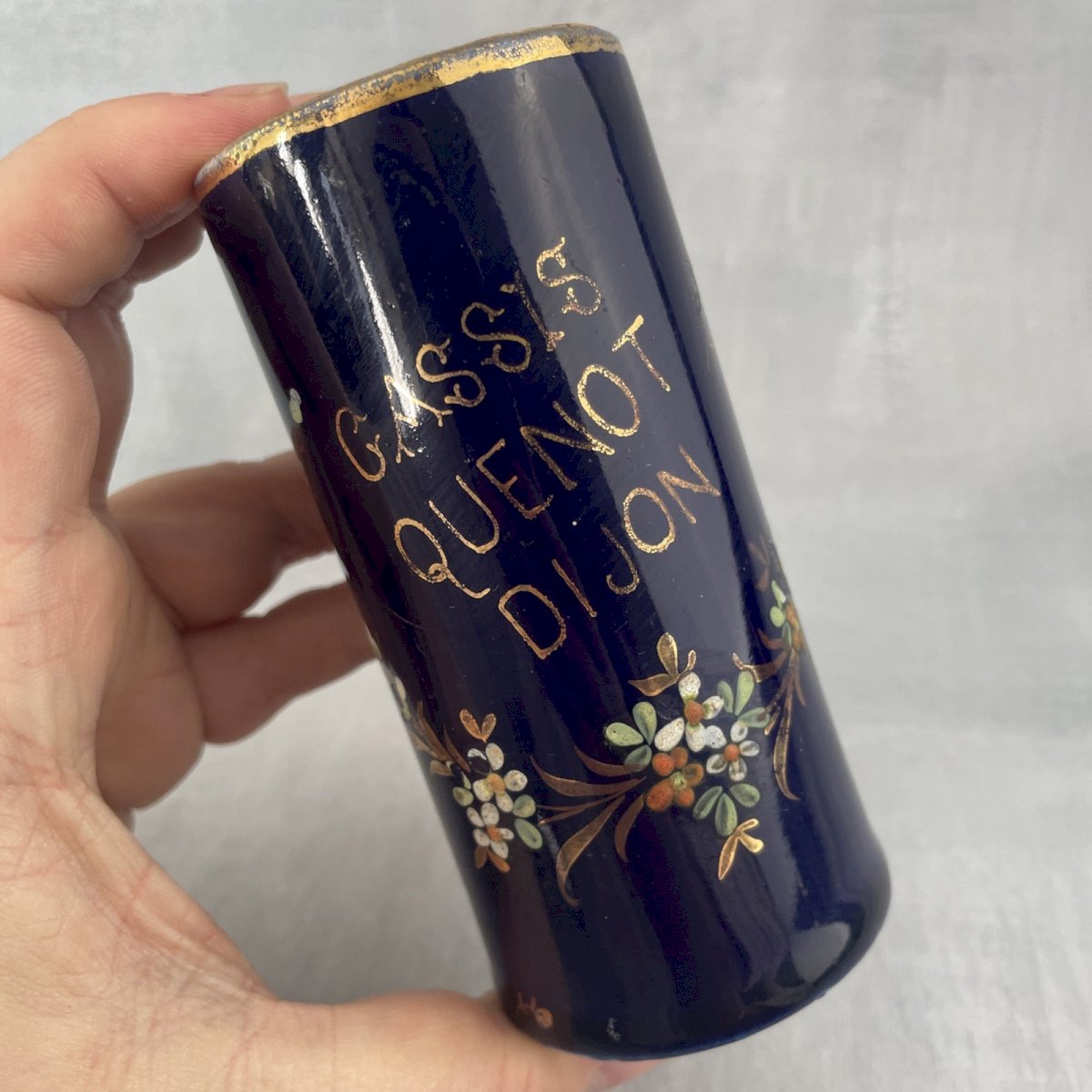 Ancien pot à moutarde extra A. Bizouard Dijon Cassis Quenot Dijon  collection cuisine Antique extra mustard pot A. Bizouard Dijon Cassis Quenot Dijon kitchen collection Hauteur ~ 11 cm Diamètre base ~ 5.4  cm Poids total ~ 0.23 kg Bel état d'usage, usures, rayures et effacement dorure et décor, voir photos. Pensez à grouper vos achats pour réduire les frais de port ! État:OccasionObjet ayant été utilisé. les éventuelles imperfections. Type:Pot Sous-type:Pot à moutarde Pays d'origine:France