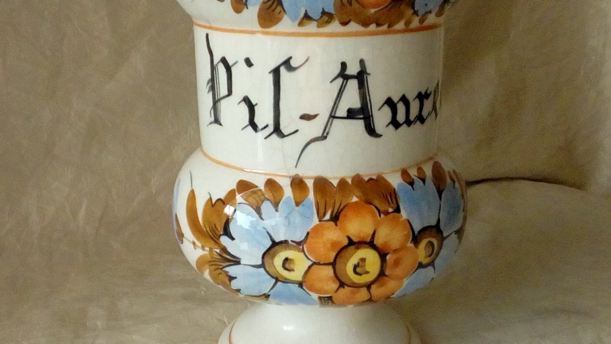 ANCIEN POT A PHARMACIE APOTHICAIRE EN FAIENCE DECOR FLORAL*