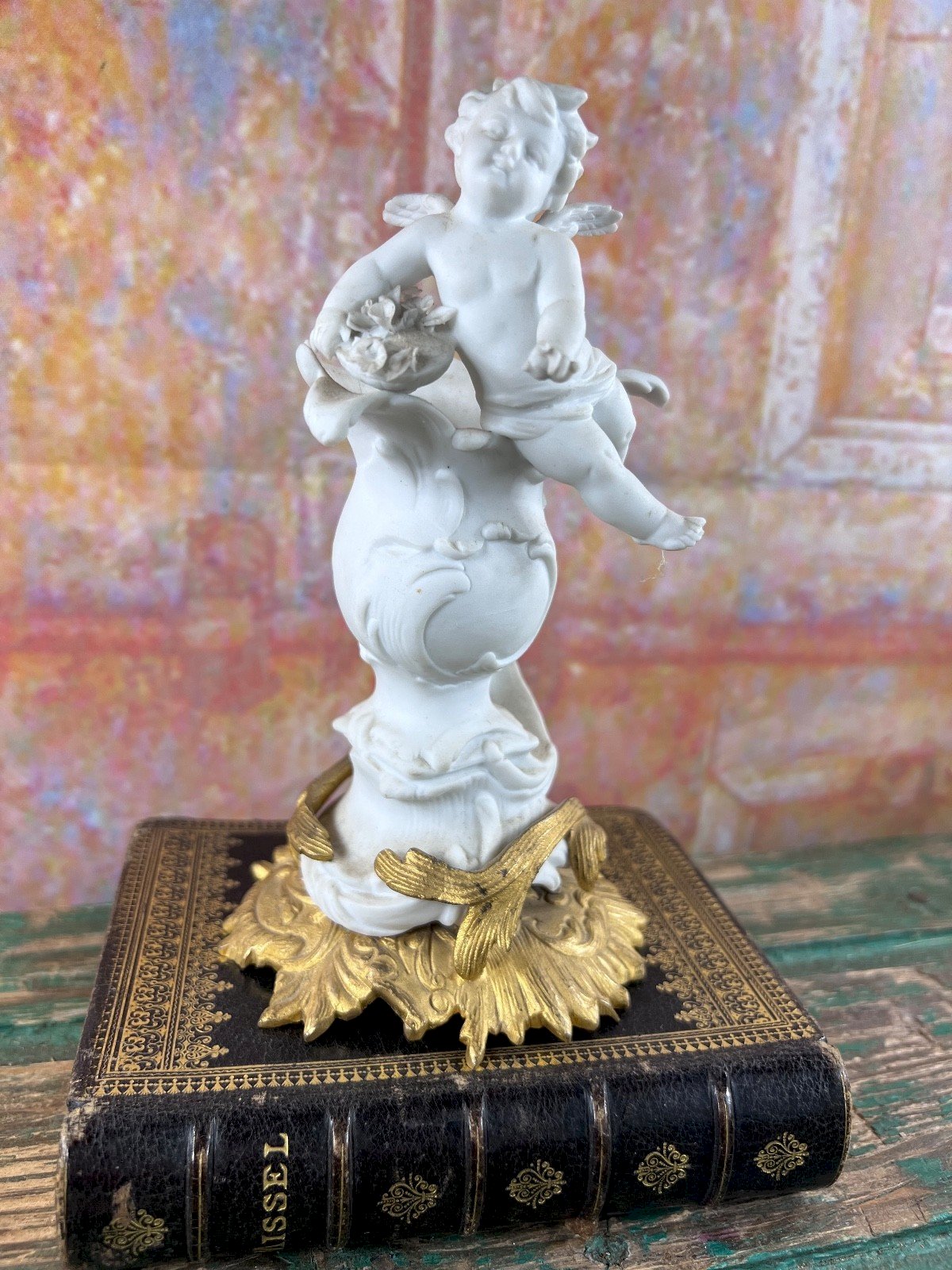 Charmant putto ailé ancien , en biscuit blanc , présenté sur un élégant socle feuillagé doré d’inspiration rocaille. Cette sculpture décorative, typique de la fin du XIXᵉ siècle, évoque l’esthétique des salons bourgeois et des intérieurs raffinés. Le modelé est doux et expressif, avec un beau contraste entre la blancheur mate du biscuit et la dorure chaleureuse de la base. ? À signaler : un pied est manquant , visible sur les photos. Ce manque n’affecte ni la stabilité ni la présentation générale de l’objet et reste essentiellement esthétique. Idéal pour une décoration classique , un cabinet de curiosités , une vitrine ou une mise en scène poétique. Dimensions Hauteur : 16,5 cm Diamètre de la base : 9 cm Époque Fin XIXᵉ – début XXᵉ siècle (travail décoratif de style) ? Expédition Envoi soigné et sécurisé, avec emballage protecteur et numéro de suivi. Expédition internationale possible. ⚠️ Important Merci de bien examiner les photographies, qui font partie intégrante de la description et montrent l’état exact de l’objet. Type:Objet de vitrine, Décoratif Origine:France Pays d'origine:France Sous-type:Figurine Matière:biscuit Style:Louis XVI