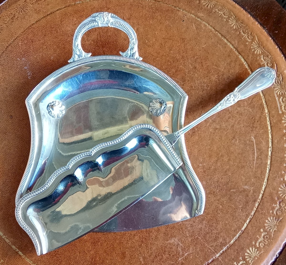 Ancien Ramasse Miette Métal Argenté Style Louis XV Orfèvre Roux Marquiand Lyon