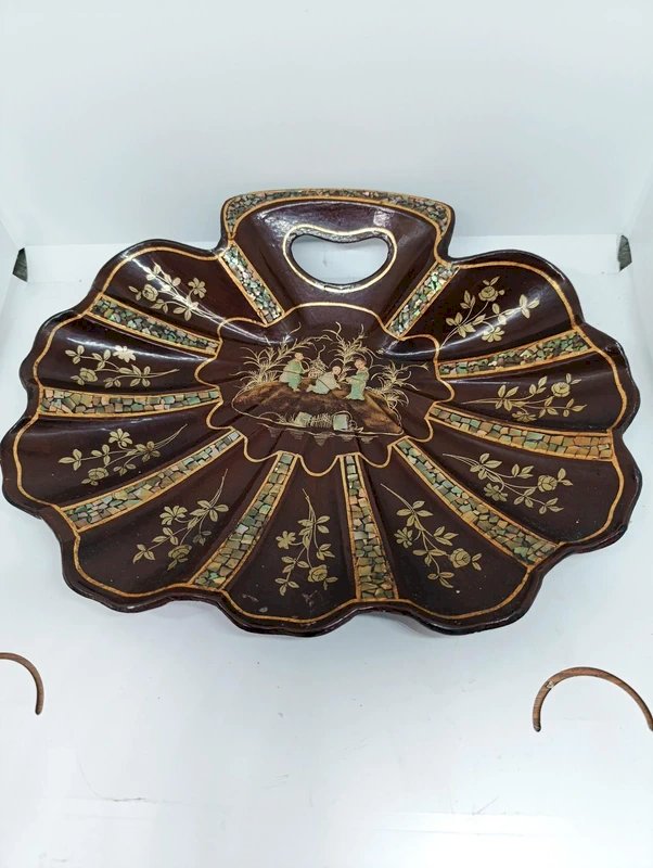Coupelle ramasse miettes ancien en papier mâché Napoléon III