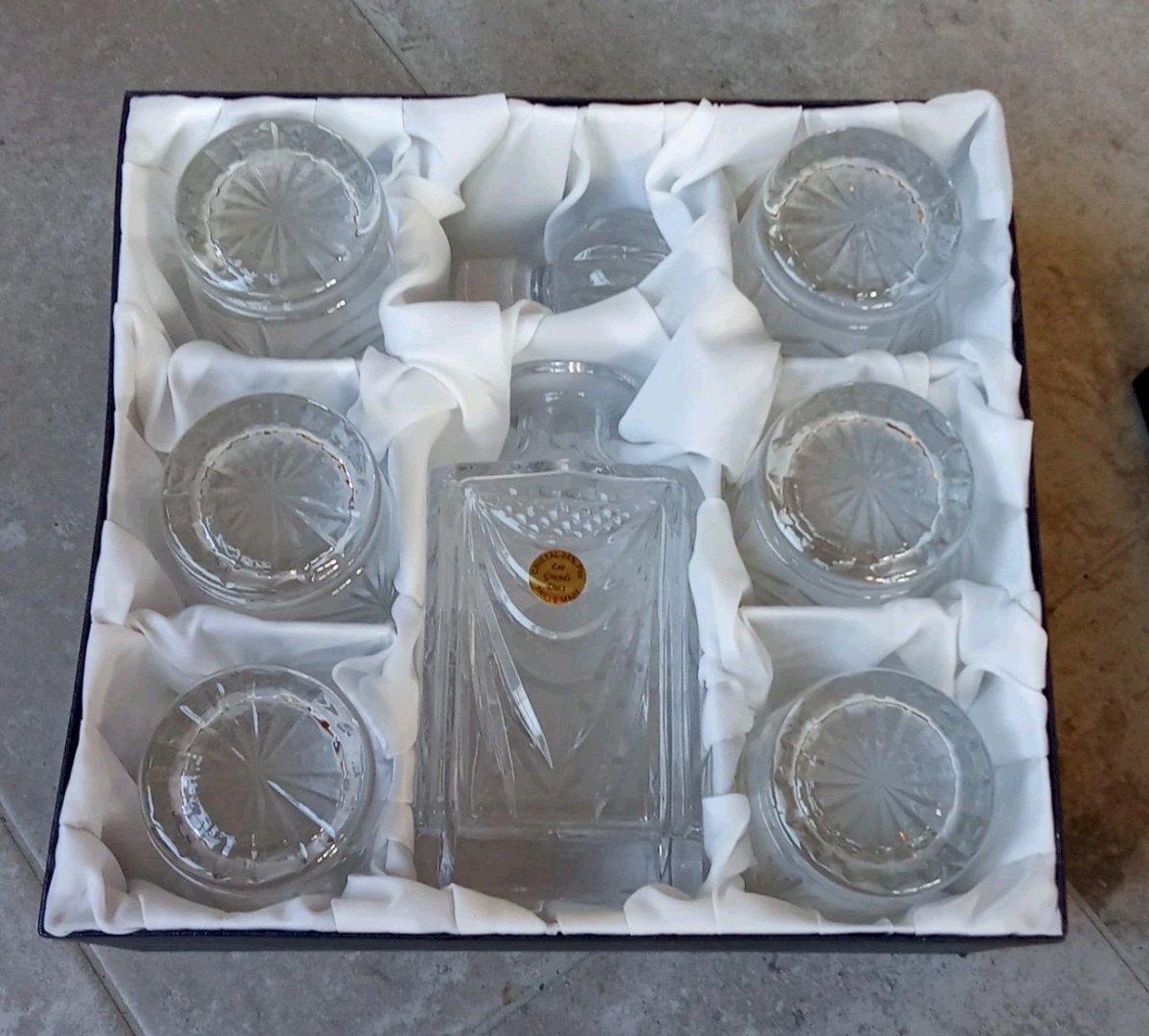 Ancien Service À Whisky 6 Verres + Carafe Cristal Lorraine Les Grands Ducs