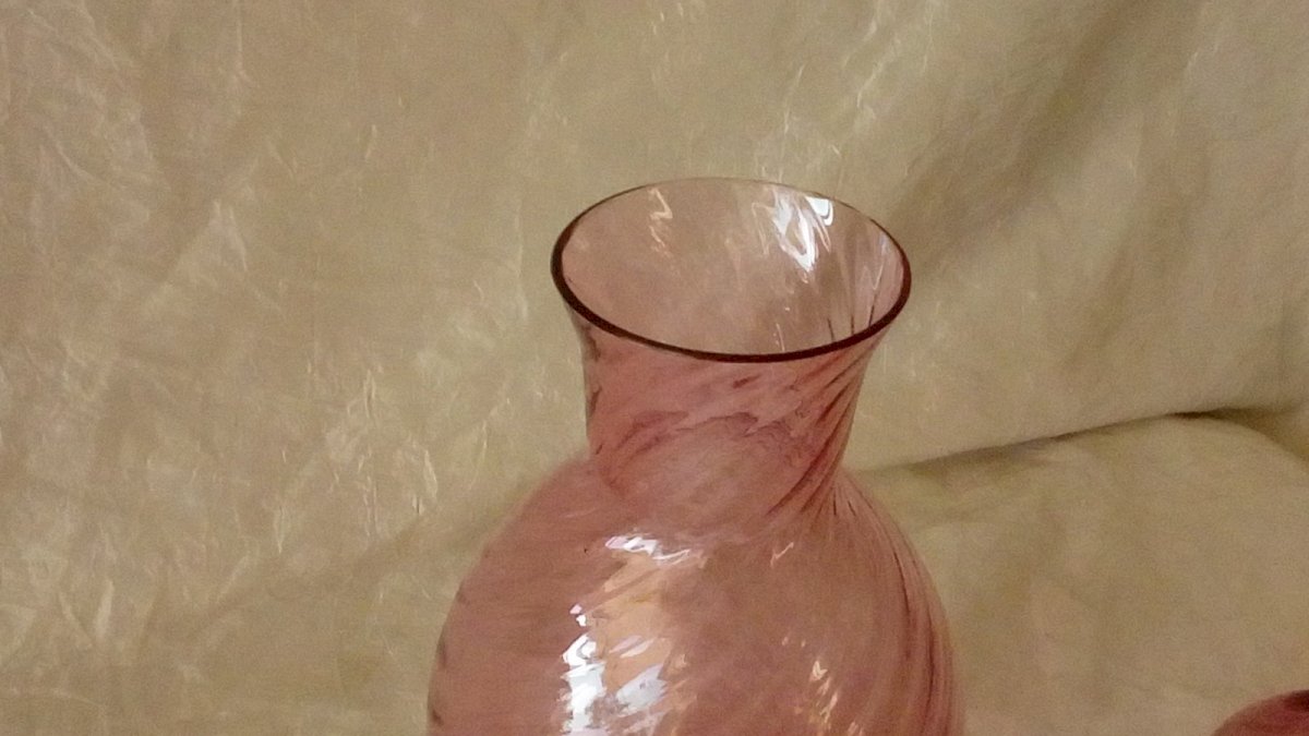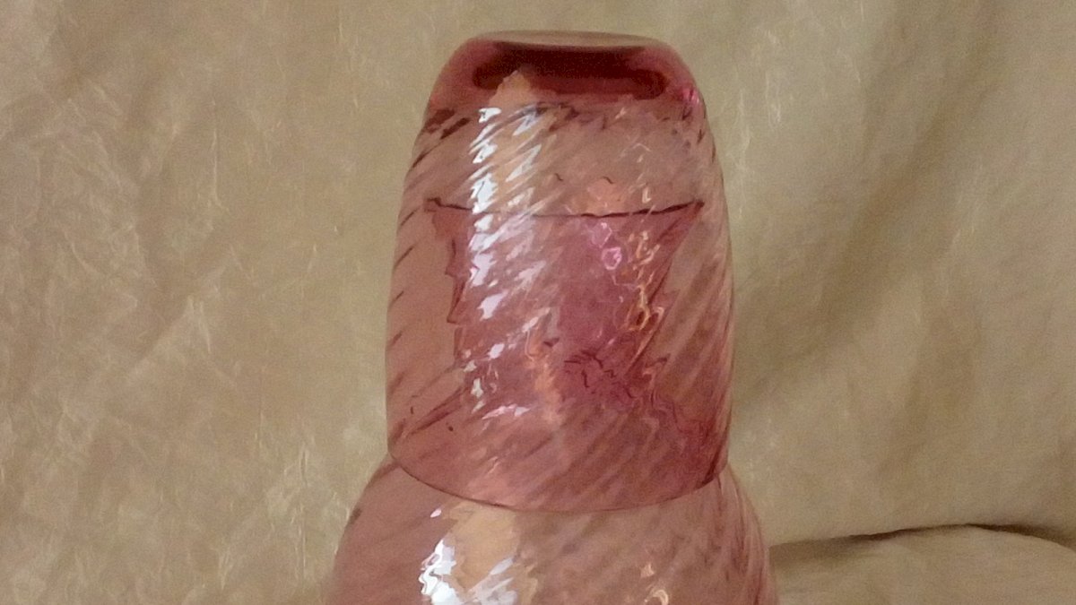 TRES BEAU ET ANCIEN SERVICE DE NUIT CARAFE GOBELET EN VERRE COULEUR ROSE AVEC DES REFLETS MAUVE HAUTEUR TOTALE 22 cm HAUTEUR DE LA CARAFE 18 cm LARGEUR 10 cm HAUTEUR DU GOBELET 9 cm DIAMETRE 7.50 cm EN BON ÉTAT