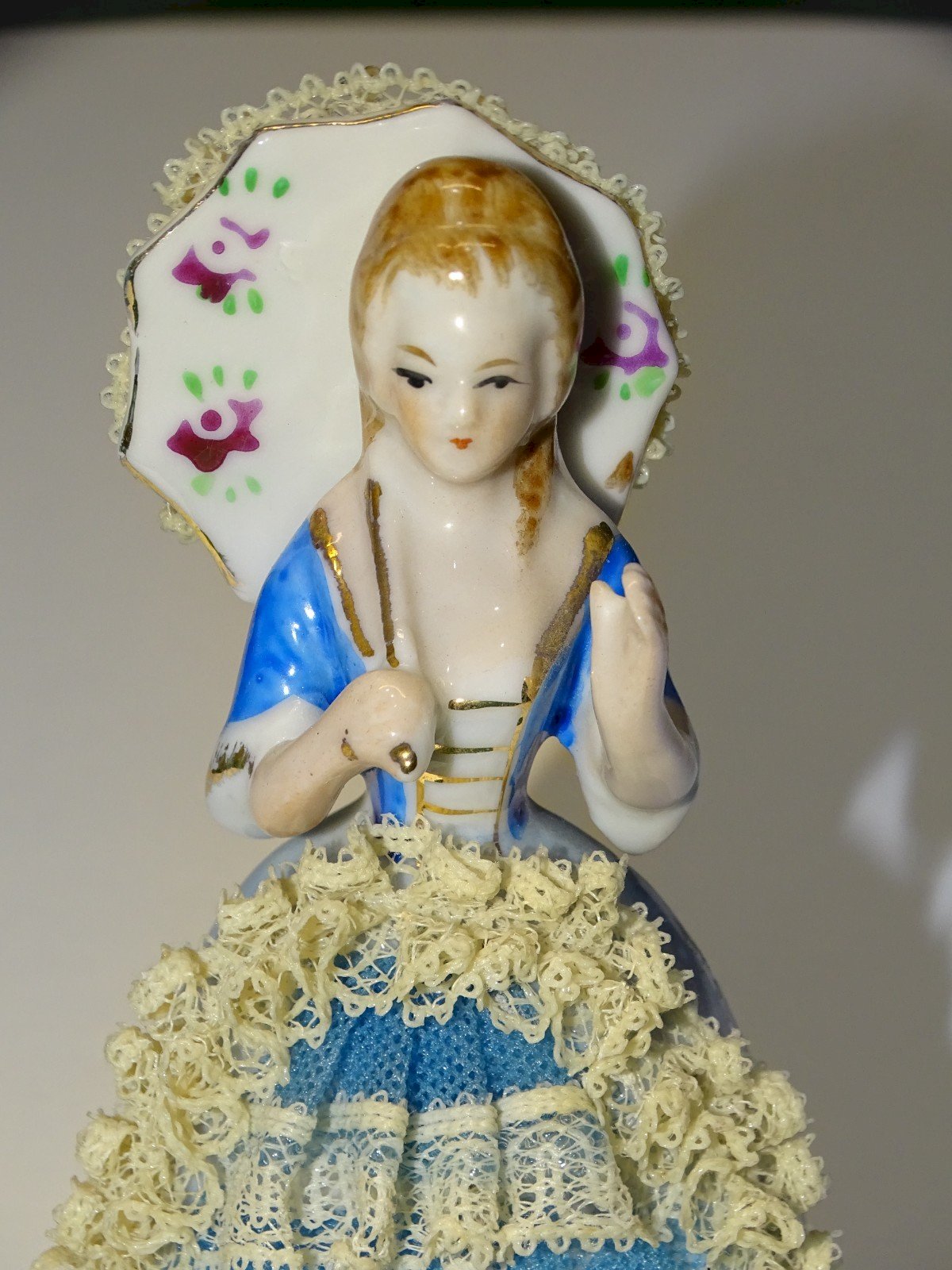 Joli sujet céramique jeune femme à l'ombrelle avec une jolie dentelle porcelaine - pas de marque visible - jus de grenier, en bon état d'usage (voir photos) - Réf. 1V240718/489 - Hauteur 11,5 g - Longueur 6,5 cm - Poids 76 g - Pour me contacter mon adresse mail : EXPEDITION POSSIBLE EN MONDIAL RELAY ou COLISSIMO sur demande TRES BON EMBALLAGE GARANTI MERCI de BIEN REGARDER TOUTES les PHOTOS car ELLES FONT PARTIE INTEGRANTE de la DESCRIPTION et PERMETTENT de VOIR l'OBJET AU MIEUX avec SES PETITS DEFAUTS EVENTUELS -