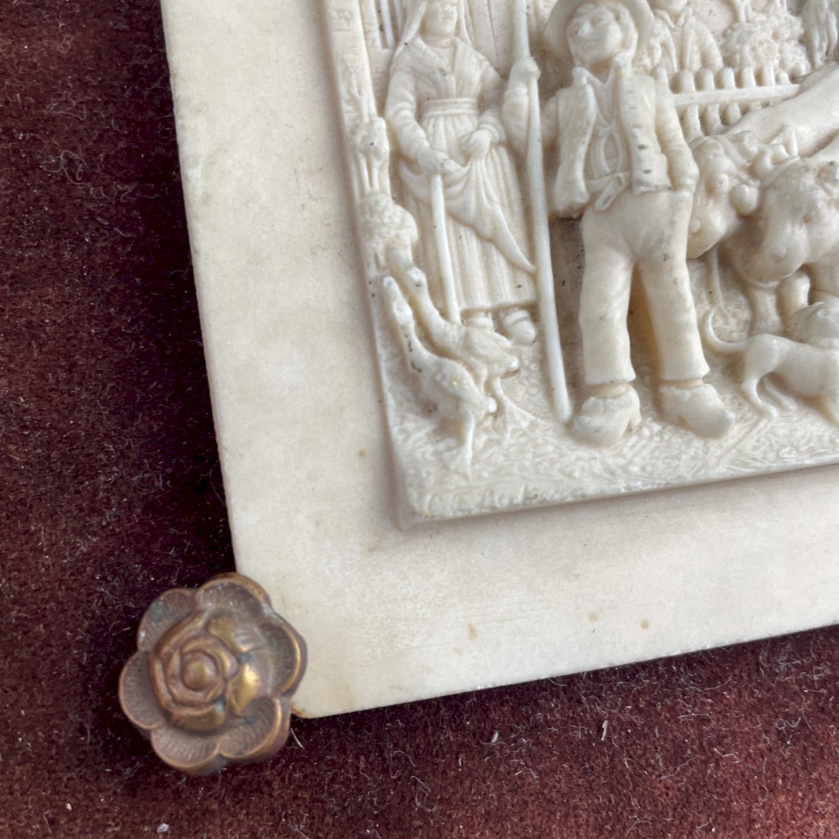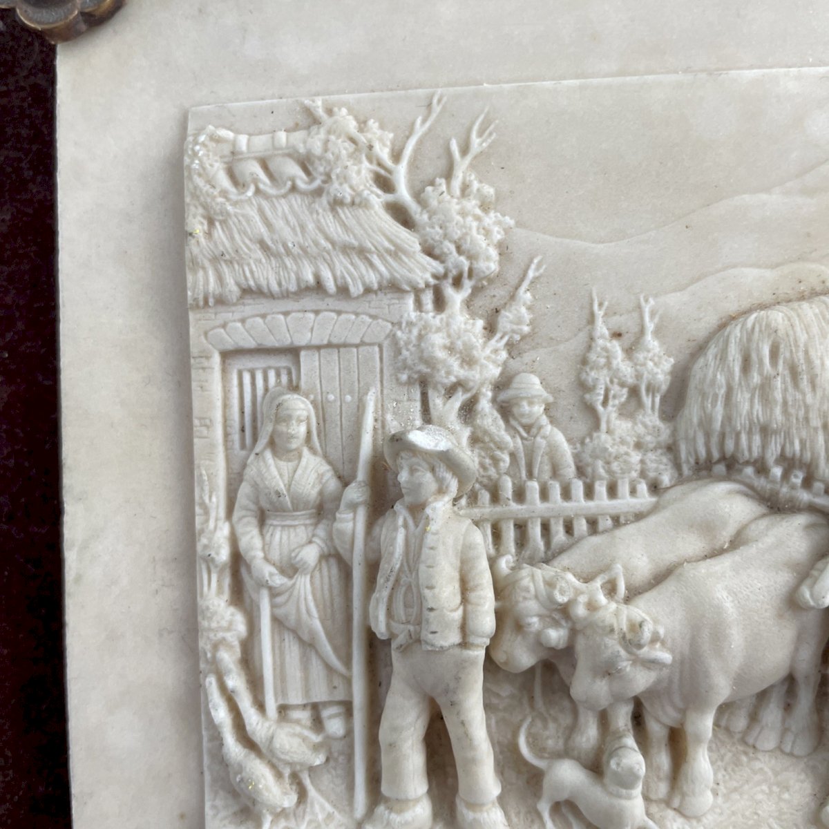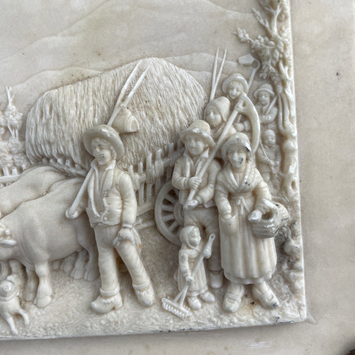 Ancien tableau bas-relief en pierre calcaire scène paysanne signé CF Becker