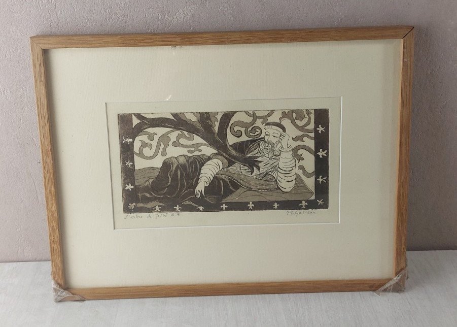 Ancien tableau / dessin / peinture, l'arbre de Jessé, par M.M. Gasseau
