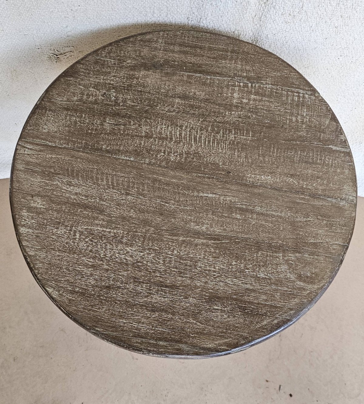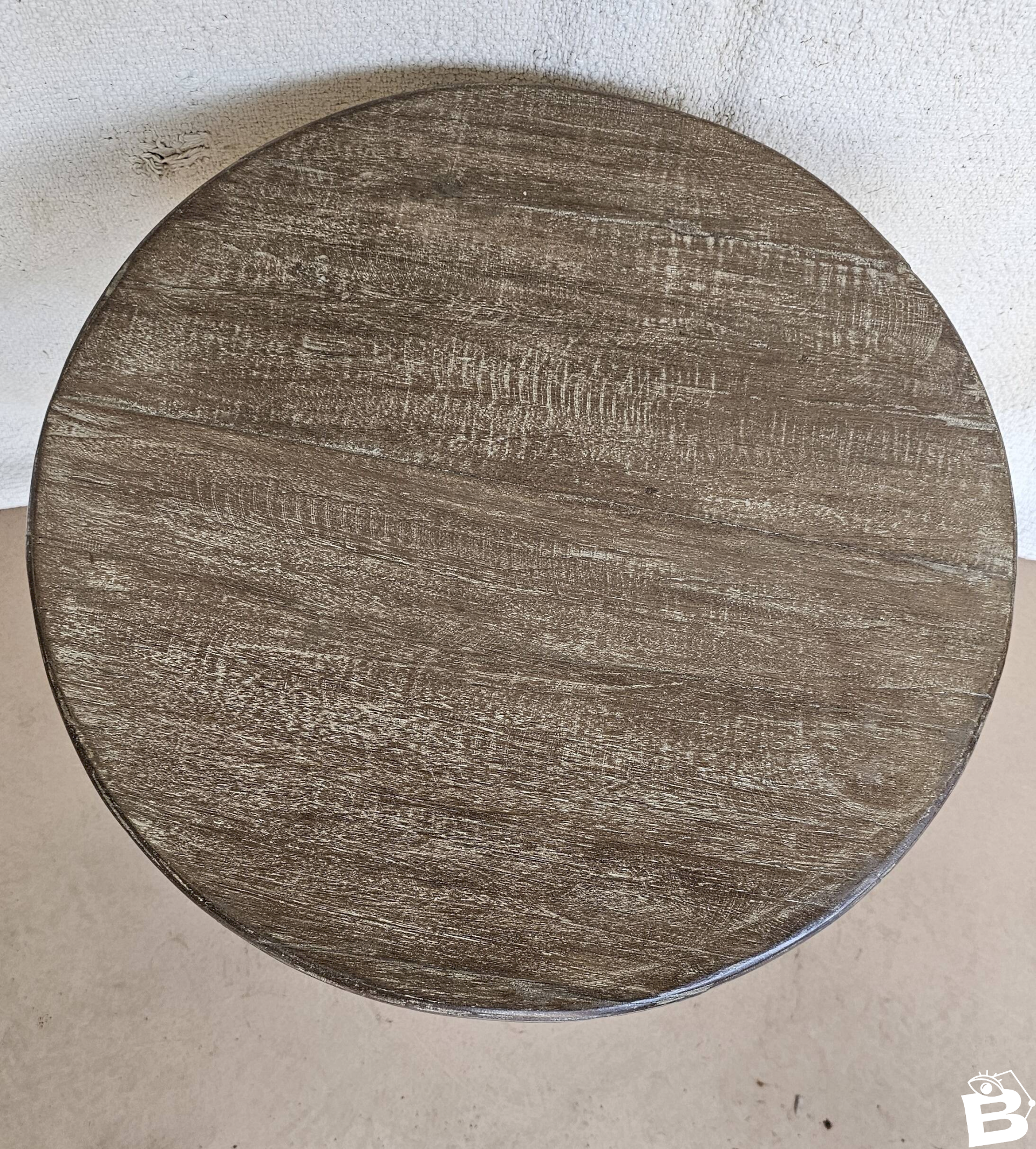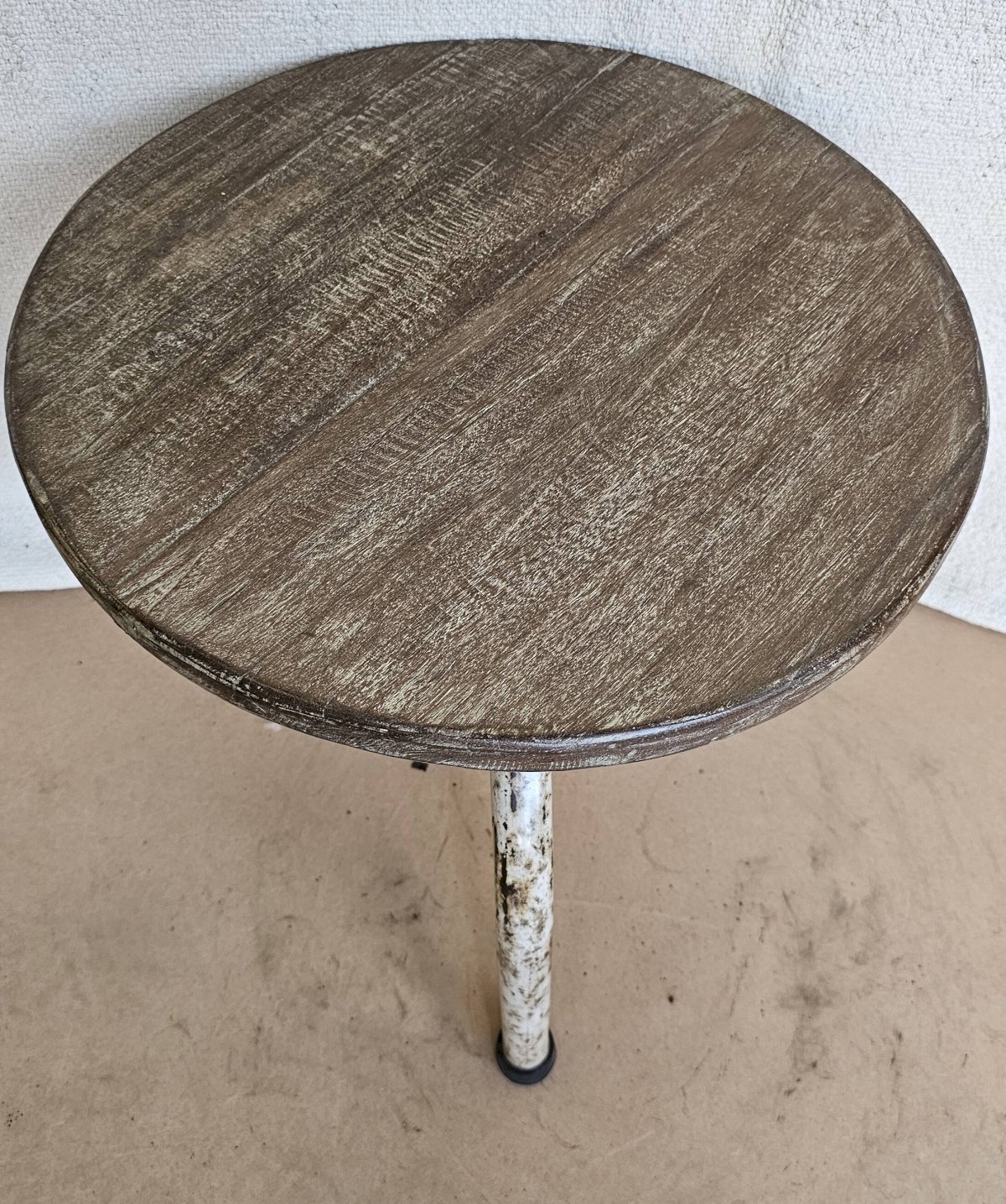Ancien tabouret datelier en teck + fer forgé Industriel Métal