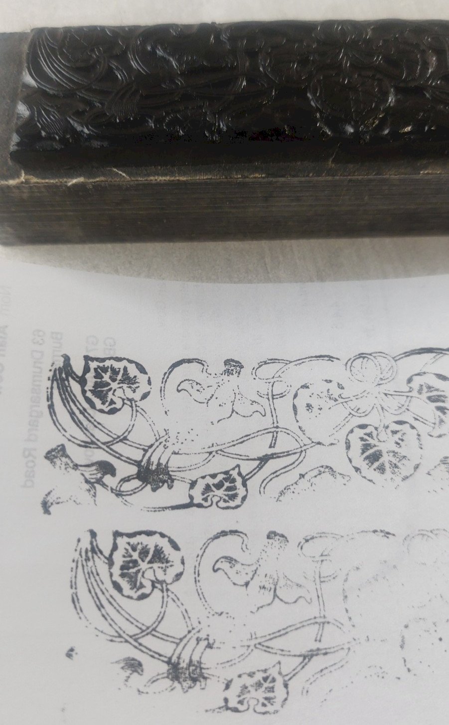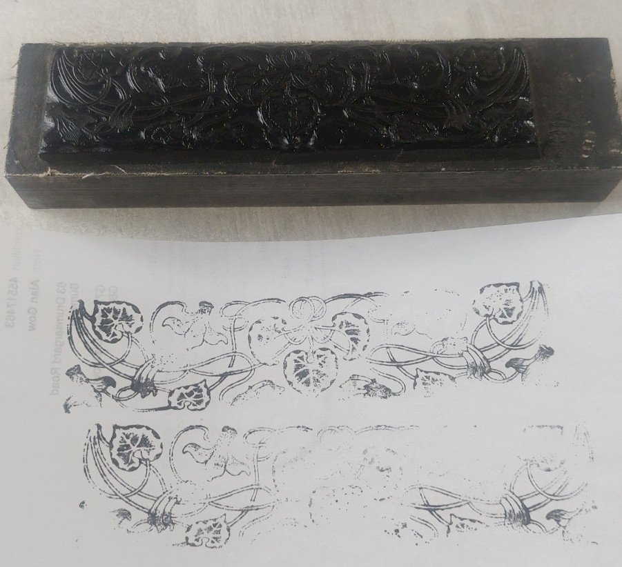 Ancien tampon frise, décor feuilles, en métal
