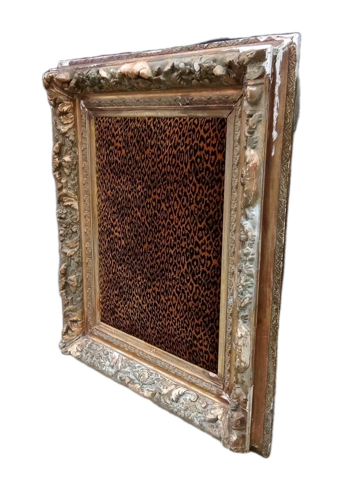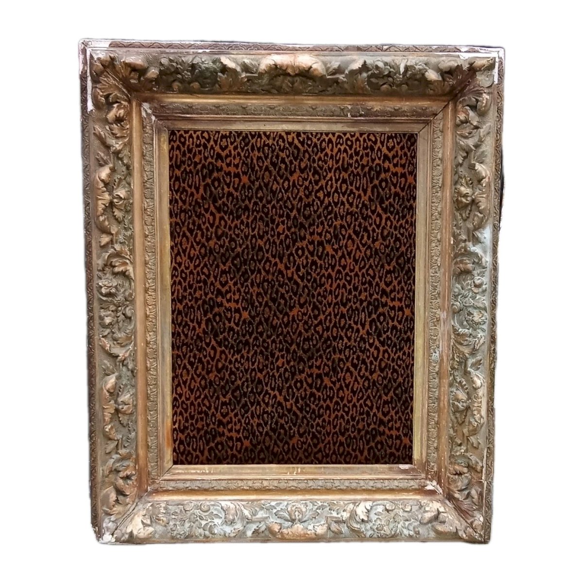 Ancien Très Grand Cadre Encadrement Velours Panthère Pièce Unique