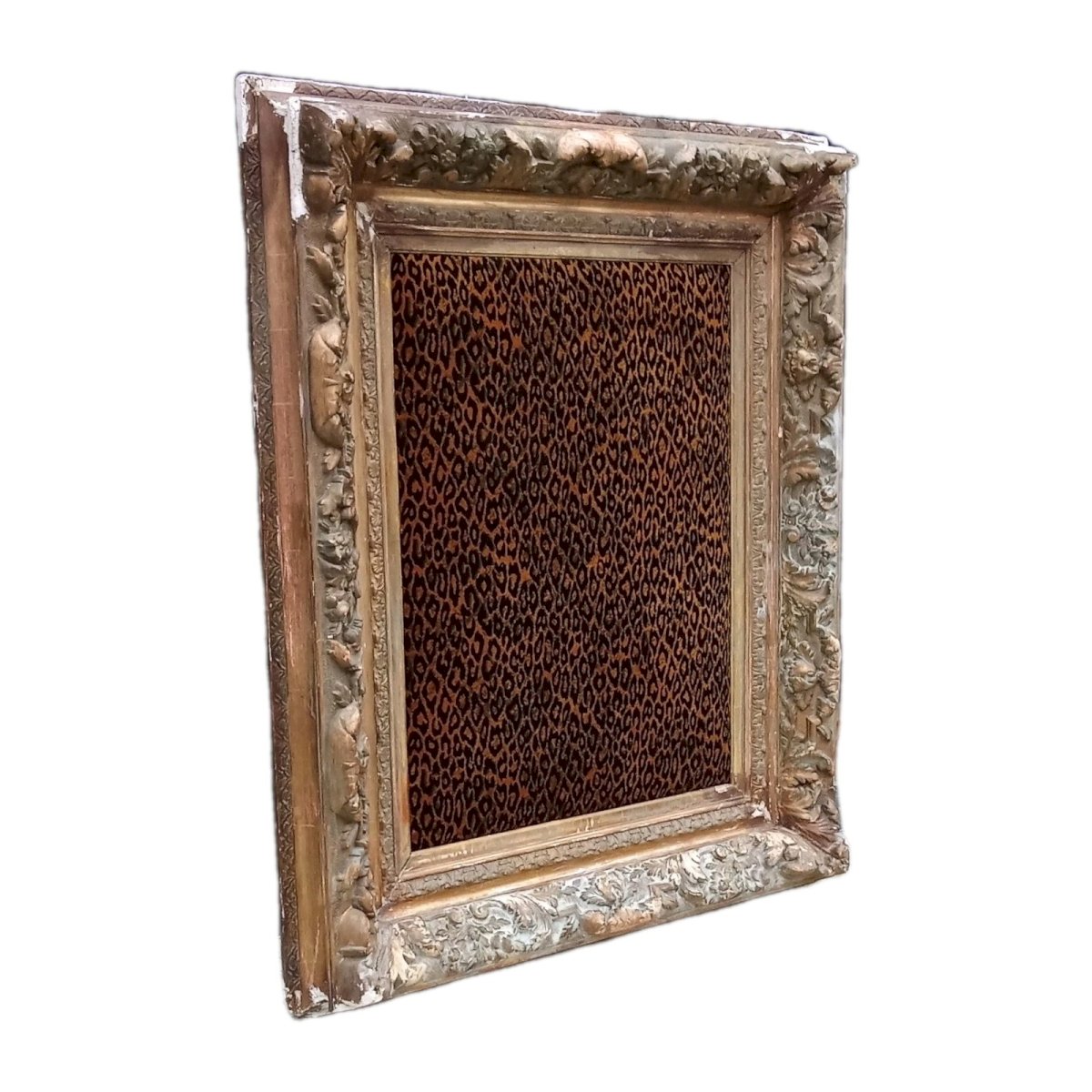 Ancien Très Grand Cadre Encadrement Datant du 19 ème siècle Intérieur Velours Panthère Pièce unique Très décoratif Quelques défauts sur le cadre Ce qui lui donne encore plus de cachet Dimensions totales 87.8 cm x 106.7 cm Épaisseur approximative cadre 12.5 cm Dimensions velours 55 cm x 78 cm Livraison possible par transporteur.me contacter pour le tarif selon votre région Type:Encadrement