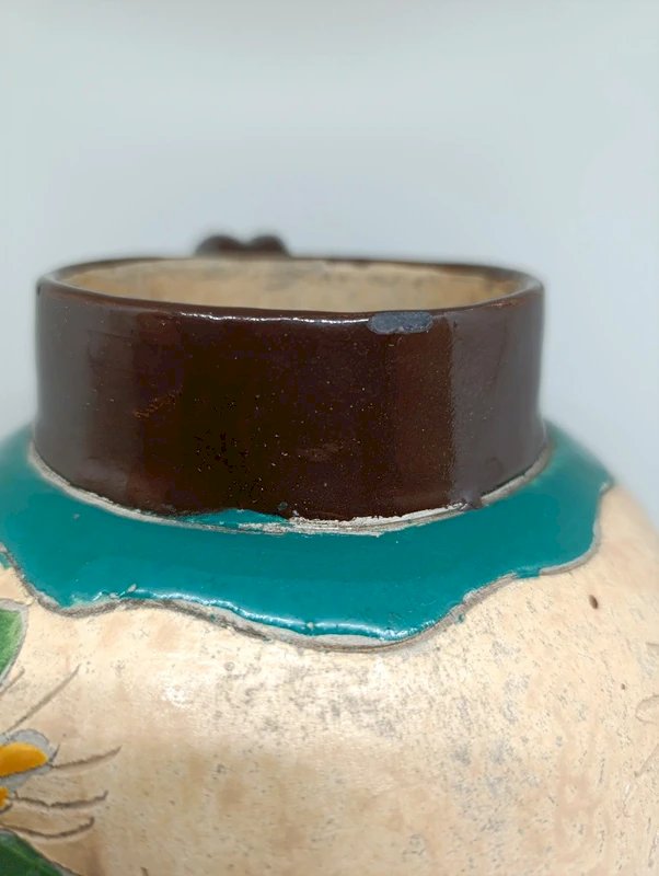 ancien vase a decor floral signé J massier en bon etat hauteur cm à note quelques egrenures au col et au pied (voir photos) possibilite de changer de categorie pour reduire le transport