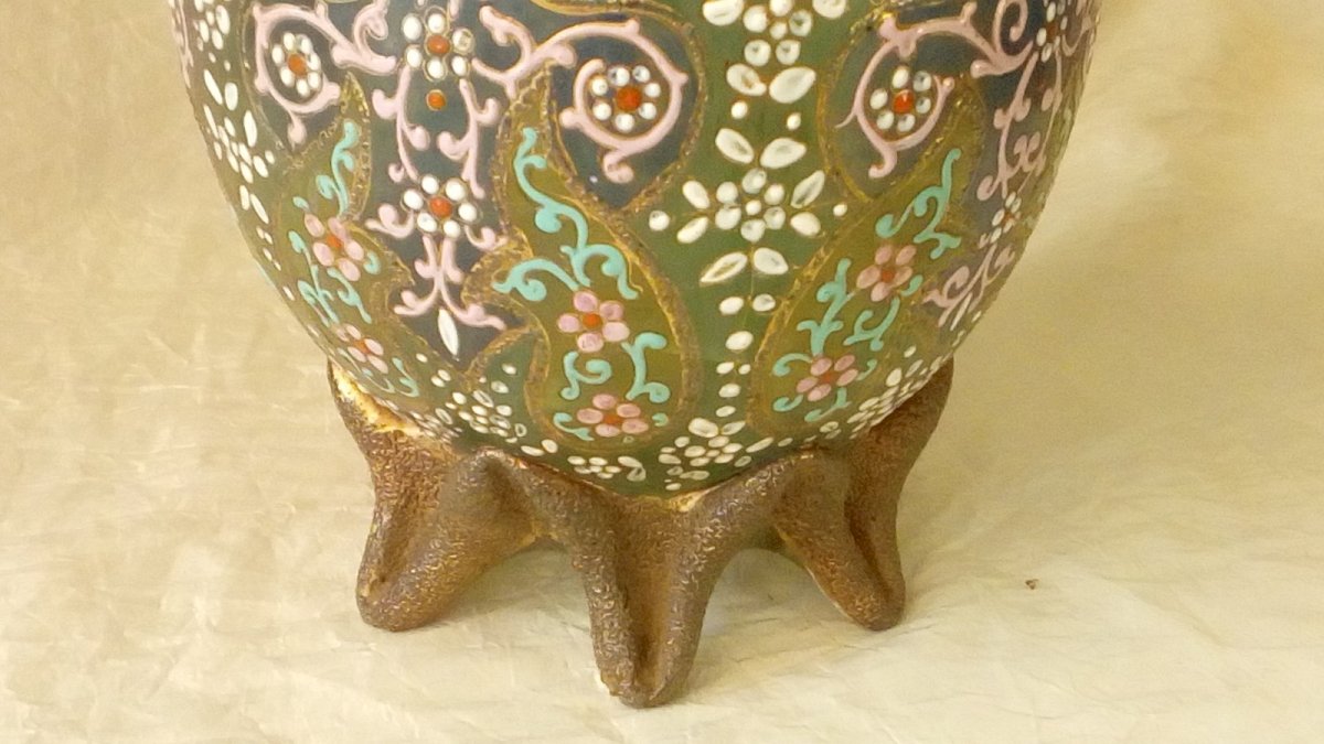 ANCIEN VASE EN VERRE EMAILLE EPOQUE 19 éme ACCIDENTÉ **