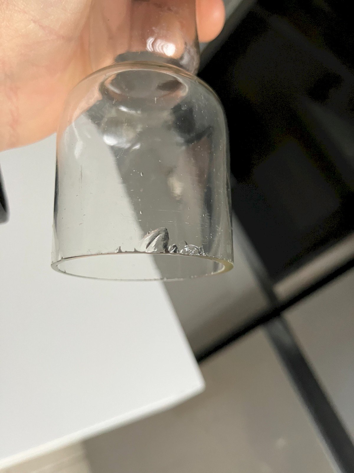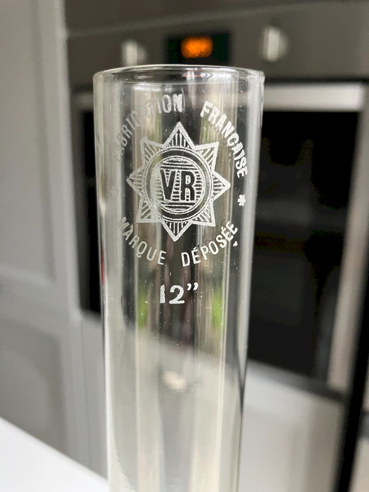 ancien verre de lampe a petrole 12 " marque VR diametre base 44 mm hauteur 25,5 cm petites egrenures a la base, voir photo expedition par MONDIALRELAY