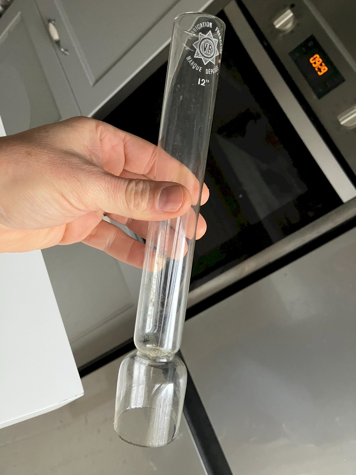 ancien verre de lampe a petrole 12 " marque VR diametre base 44 mm