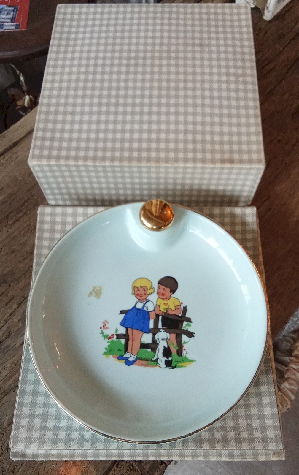 2 anciennes assiettes d enfant à bouillie chauffante En porcelaine L une est dans son coffret d origine Jolis décor Bel état Assiette.Salins France Diamètre 20.6 cm Assiette porcelaine Diamètre 17 cm Authenticité:Original Type:Arts de la table, Cuisine Origine:France Période:Design du XXème Sous-type:Assiette Style:XX Matière:Porcelaine