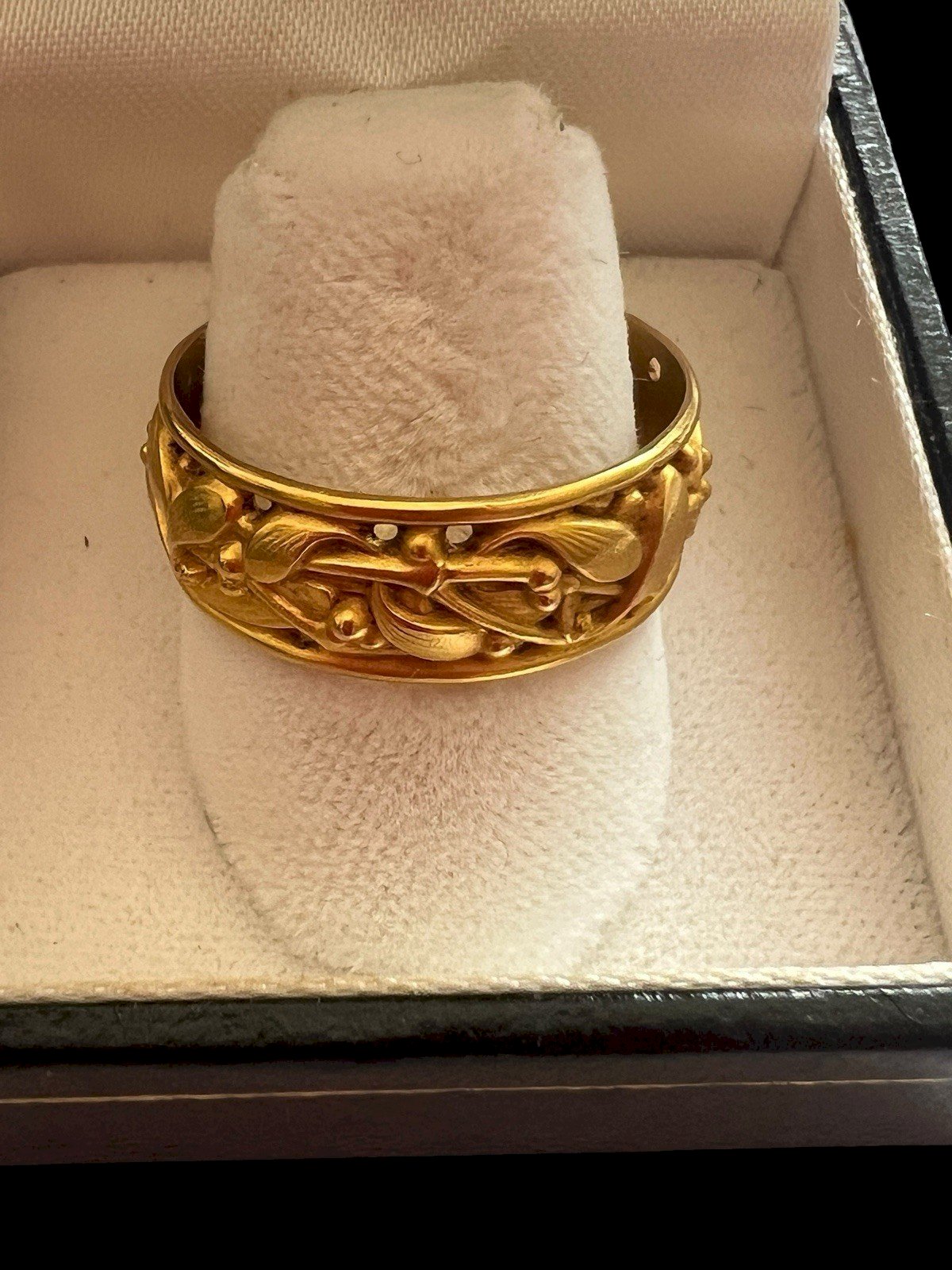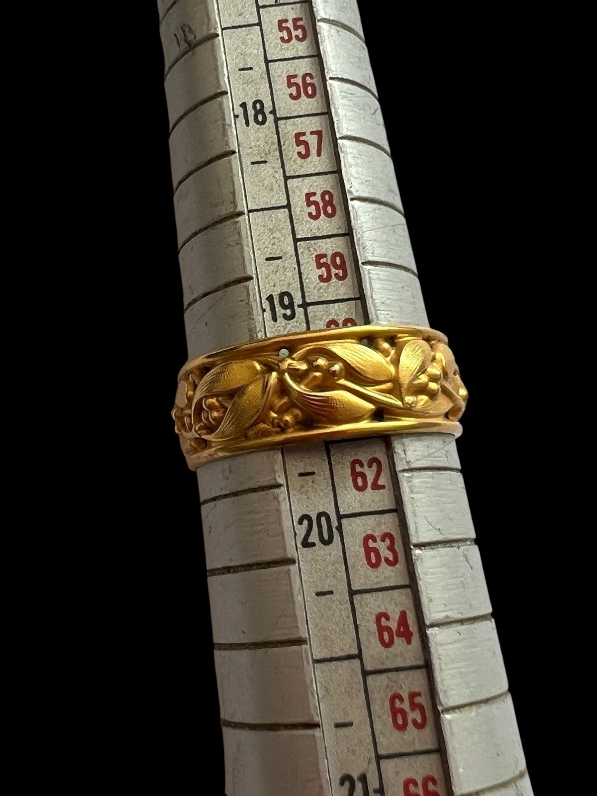 Ancienne Bague Alliance D’époque Art Nouveau Unisexe Marque Fix 61,5 FR Feuille